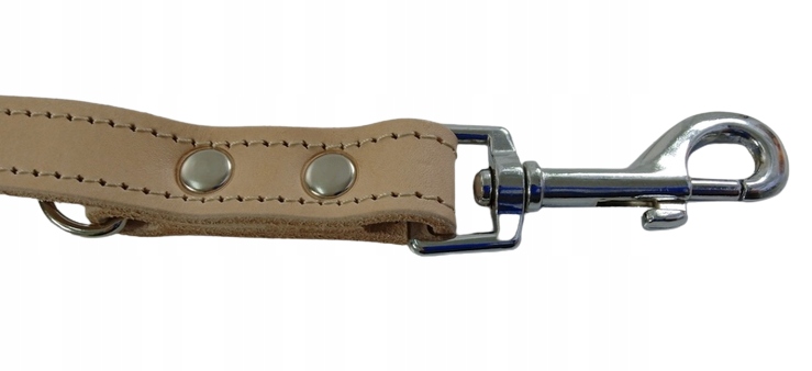 Повідець виготовлений з найвищої якості шкіри і натиснута міцними, міцними нитками. Безпека використання повідок збільшується за допомогою зварних сталевих елементів - Ви можете бути впевнені, що вони сильні та стабільні. У карабінах є діапазон обороту 360 градусів , завдяки якому повідок не заплутається. Остаточний ефект був отриманий завдяки належному фарбуванню, зліченню та змащенню шкіри. Це частування для любителів унікальних, характерних аксесуарів, створених для друга вашої собаки, 100% натуральної шкіри.