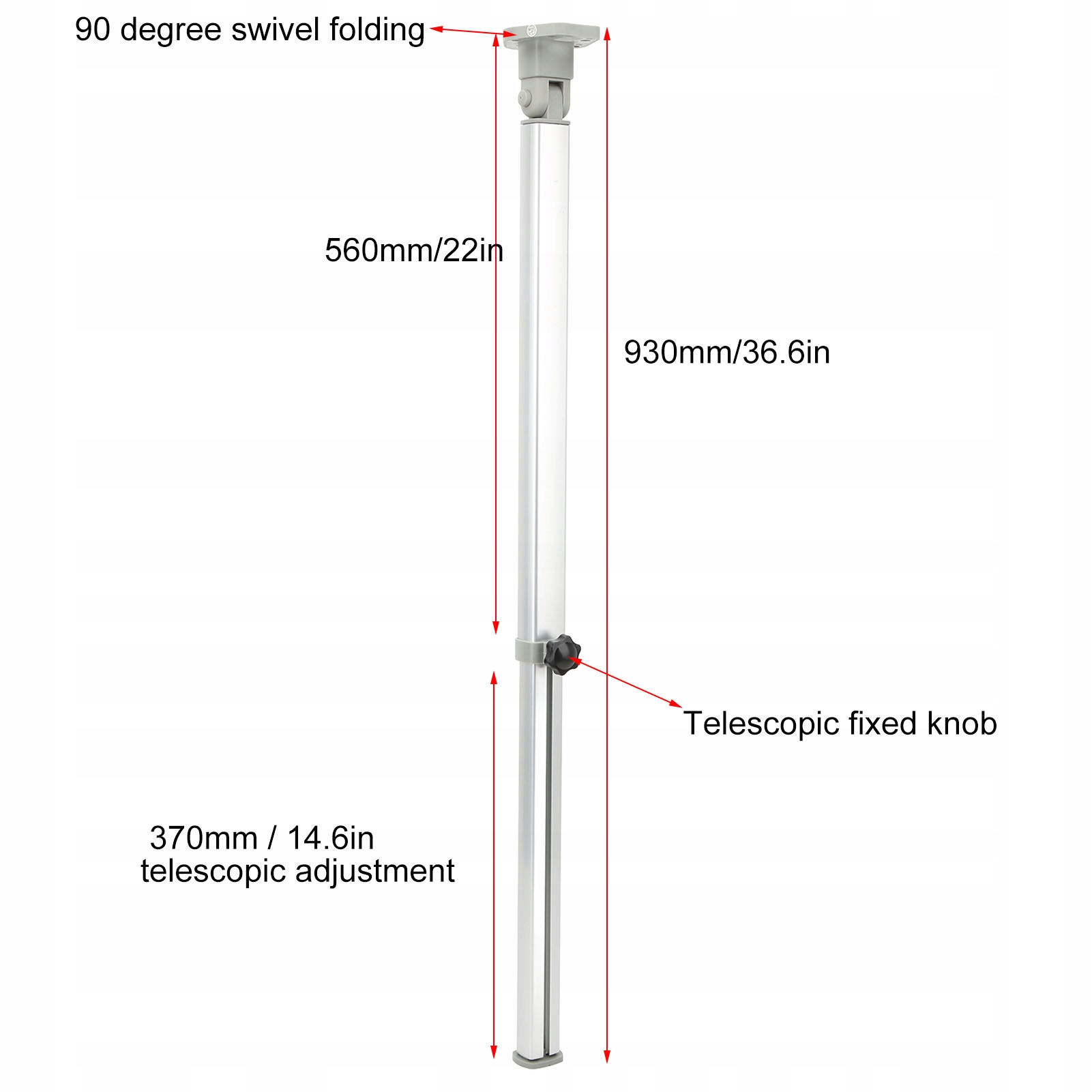 1. 560-930 мм Регульована: складна телескопічна ніжка столу з мінімальною висотою 560 мм і максимальною висотою 930 мм. Ви можете налаштувати його за допомогою безступінчатої ручки регулювання.