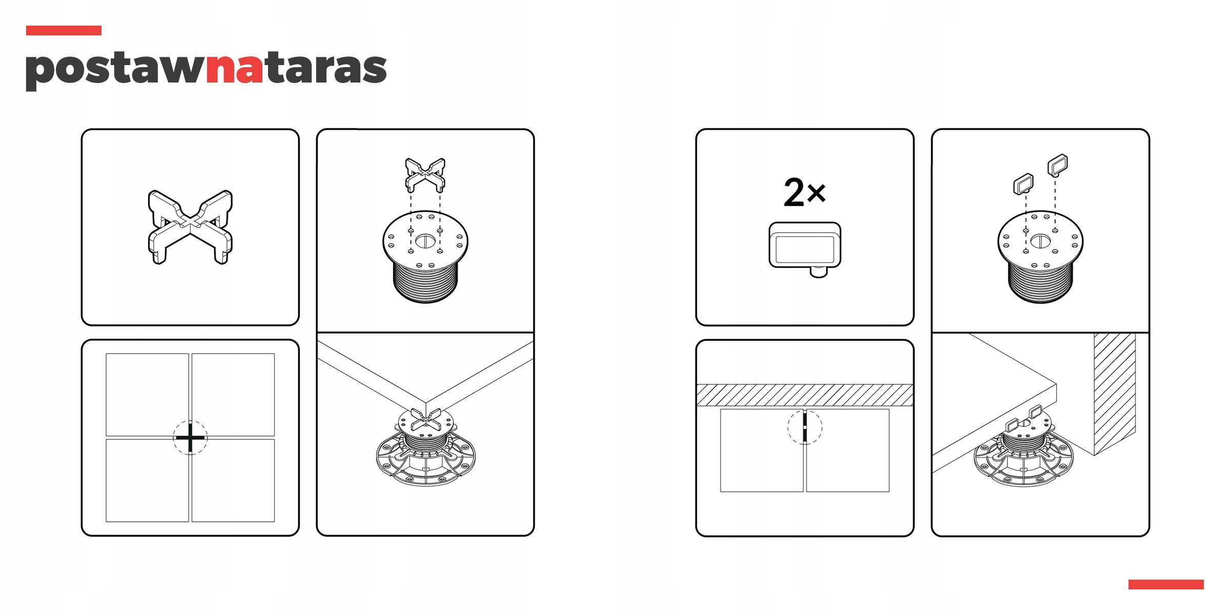 Терасні кронштейни призначені для підтримки/монтажу/вирівнювання вентильованих терас (піднятих терас) із кераміки, бетону, кам’яних терасових плит і решіток поверхневих конструкцій підлоги чи тротуарів.