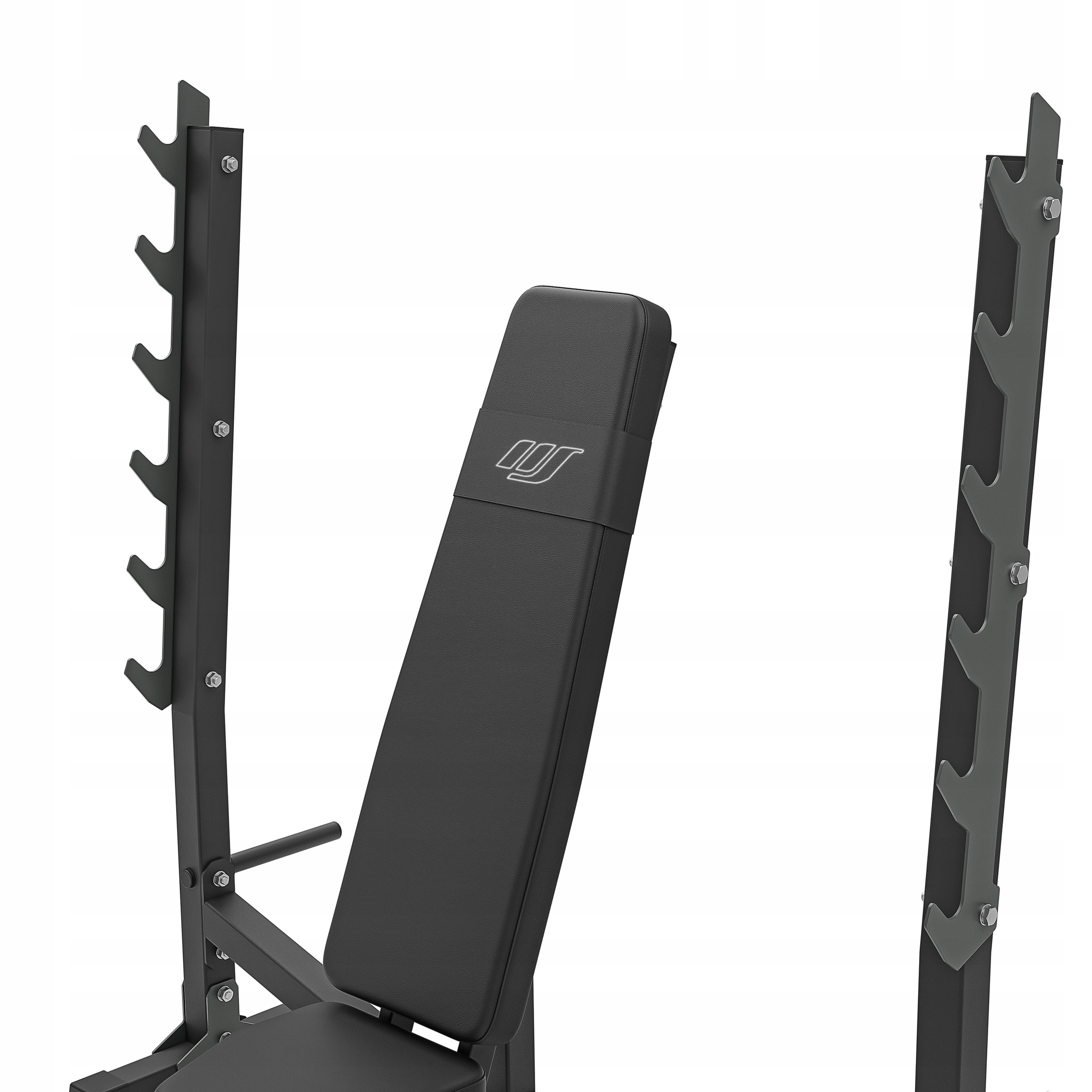Завдяки 6 рівням гачків для відкладання штанги ви можете відрегулювати оптимальне вихідне положення, забезпечуючи безпеку та комфорт під час тренування. Гаки виготовлені з міцних сталевих профілів, які стійкі не тільки до будь-яких можливих стирань і пошкоджень під час опускання штанги, а й до великих навантажень.