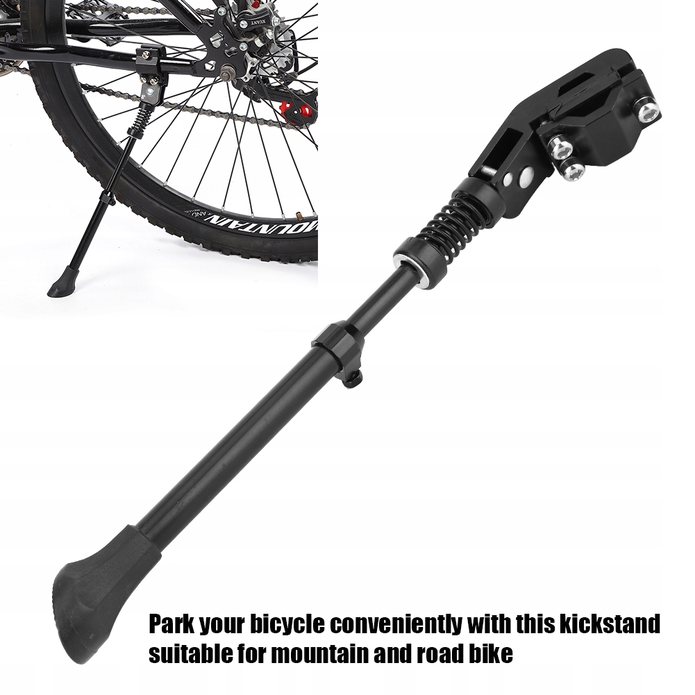 1. Припаркуйте велосипед комфортно з цією підтримкою, що підходить для гірських та дорожніх велосипедів. 2 3. Задня нижня вилка з замком для трьох стебла, регульована, доступна в діапазоні 20-700С. 4, неплацент для ніг не збільшує тертя, високу міцність, завдяки тому, що парковка є більш стабільною. 5, встановлюється в задній нижній вилці, проста у встановленні.