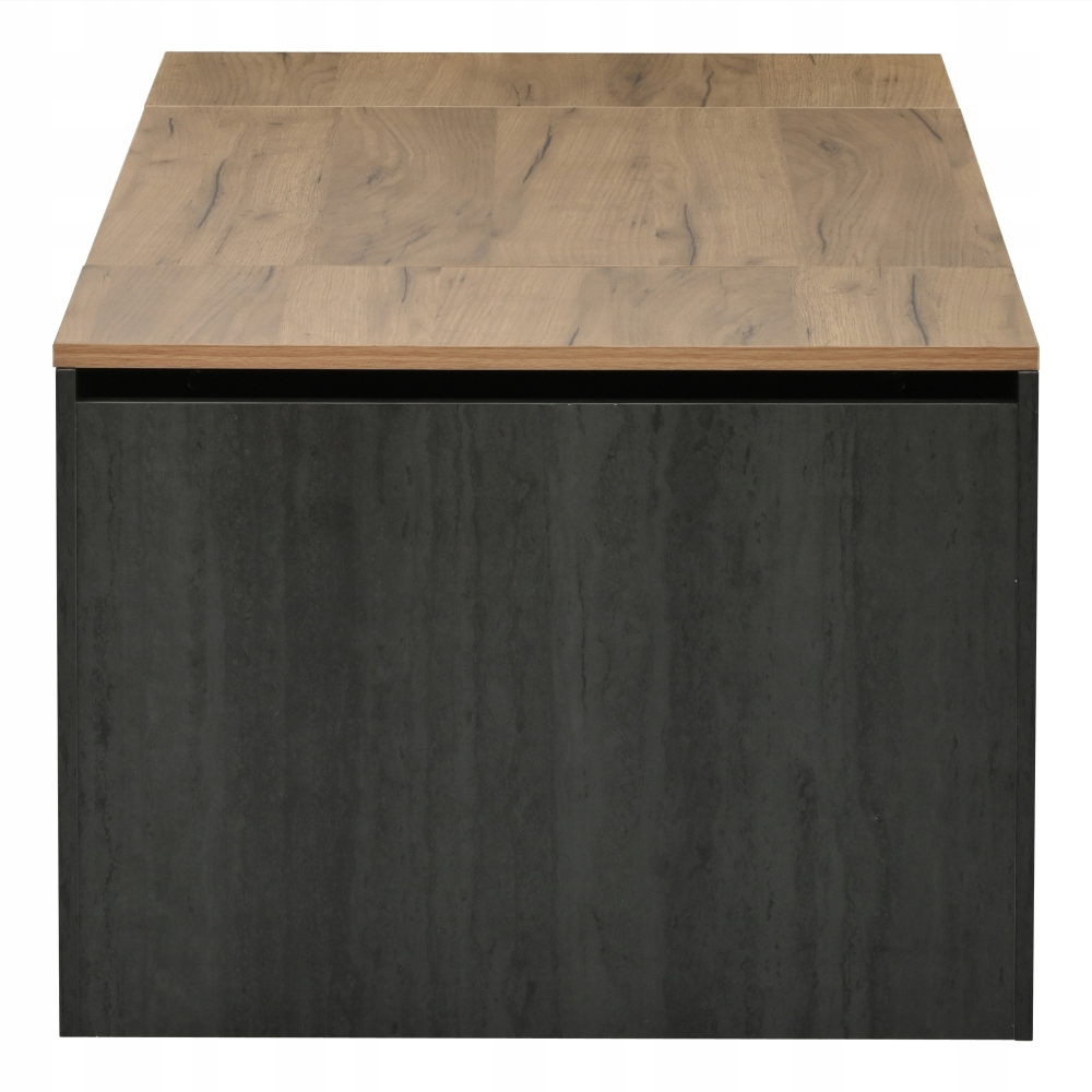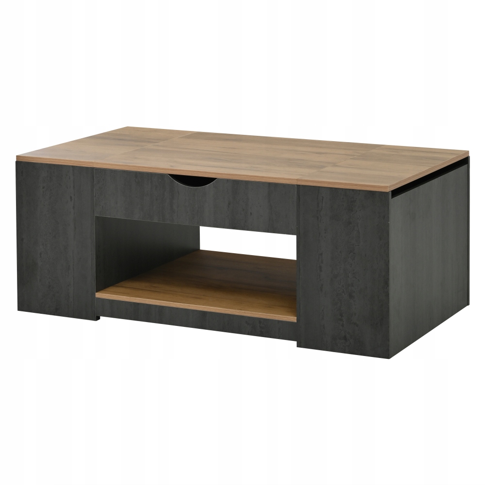 Відкрийте для себе наш унікальний журнальний столик з регульованою висотою! Цей журнальний столик довжиною 109,5 см є не тільки практичним, але й елегантним елементом дизайну інтер'єру. Стільниця з текстурою деревини надає йому природного вигляду, а спеціальна обробка сірої рами додає сучасний відтінок.