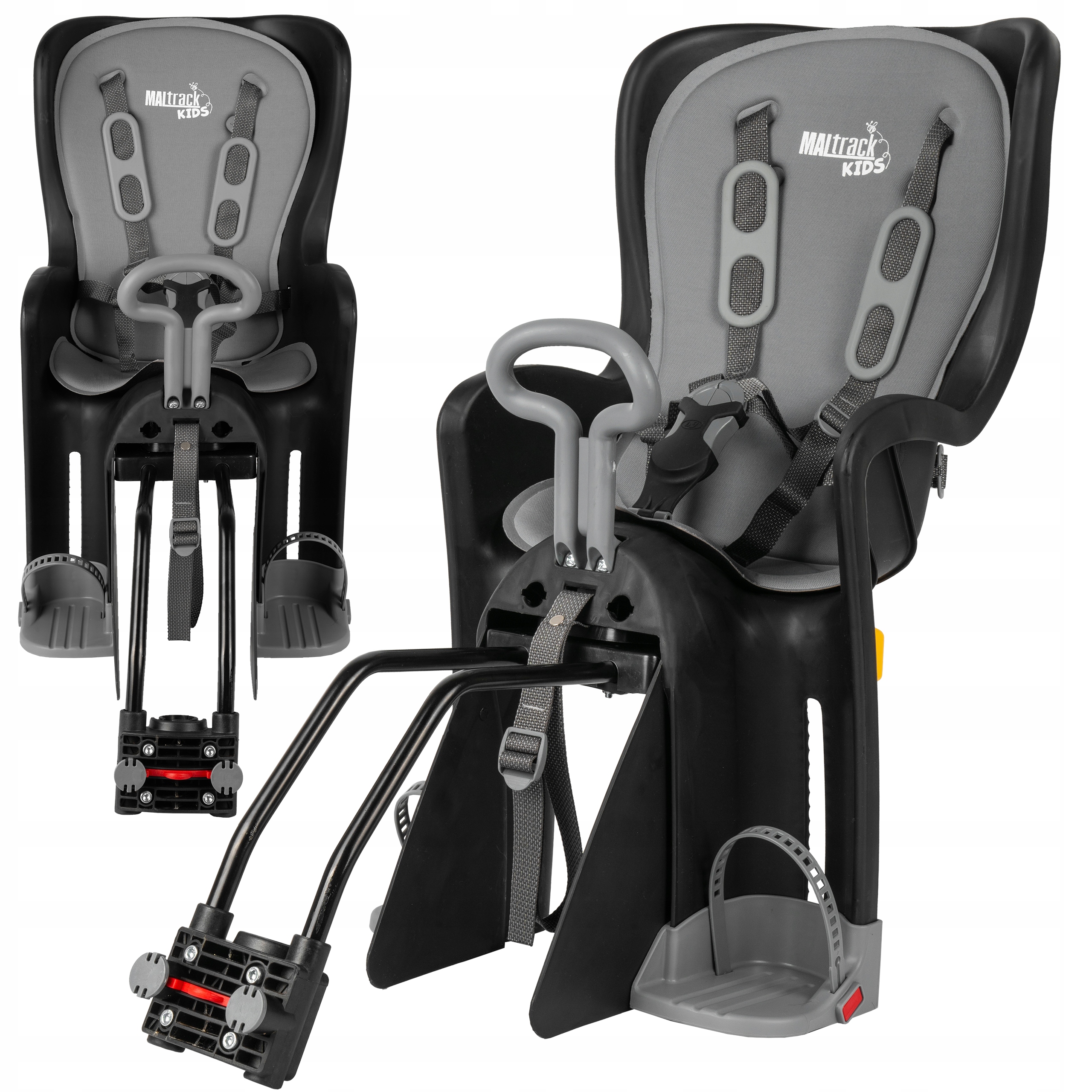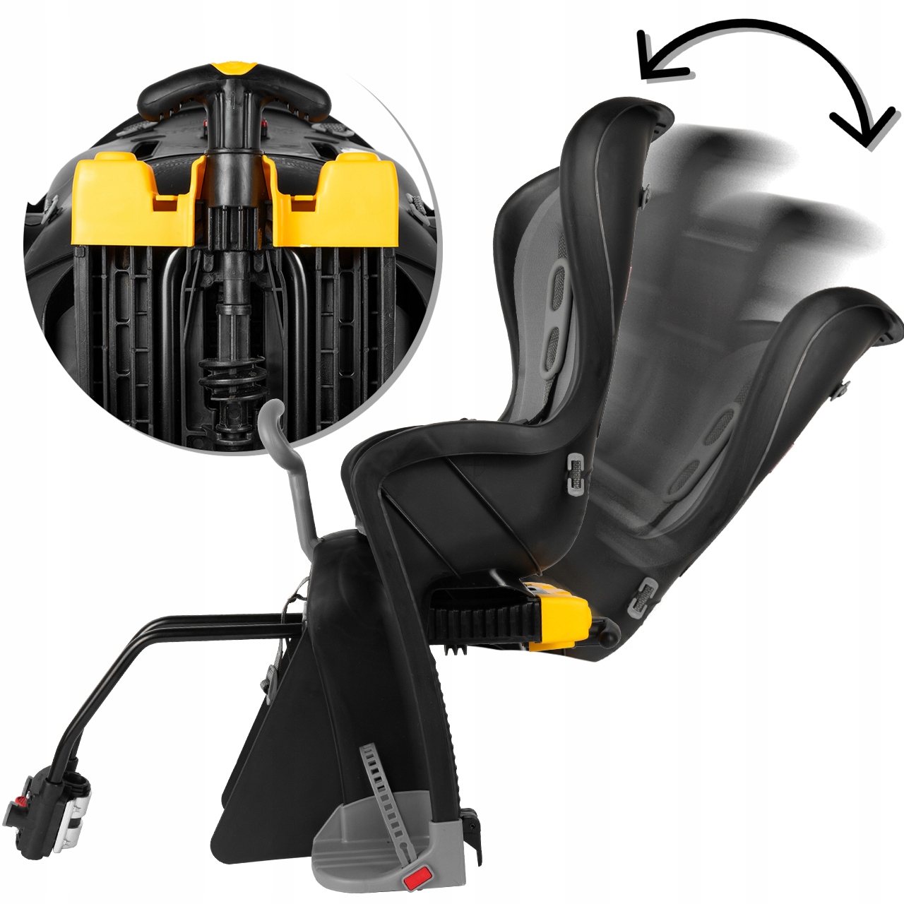 4-ступеневе регулювання опор для ніжок дитини з можливістю регулювання стопи (захист від введення стопи в спиці колеса велосипеда). Щоб сидіння було стійким, його необхідно одночасно прикріпити до рами. Рекомендований вік від 9 місяців до 7 років (до 22 кг).