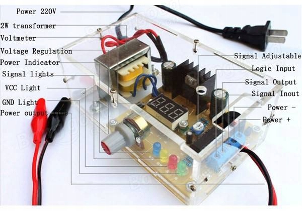Набір для самостійного збирання, який дозволяє створити повний міні-регульований блок живлення на основі стабілізатора LM317.