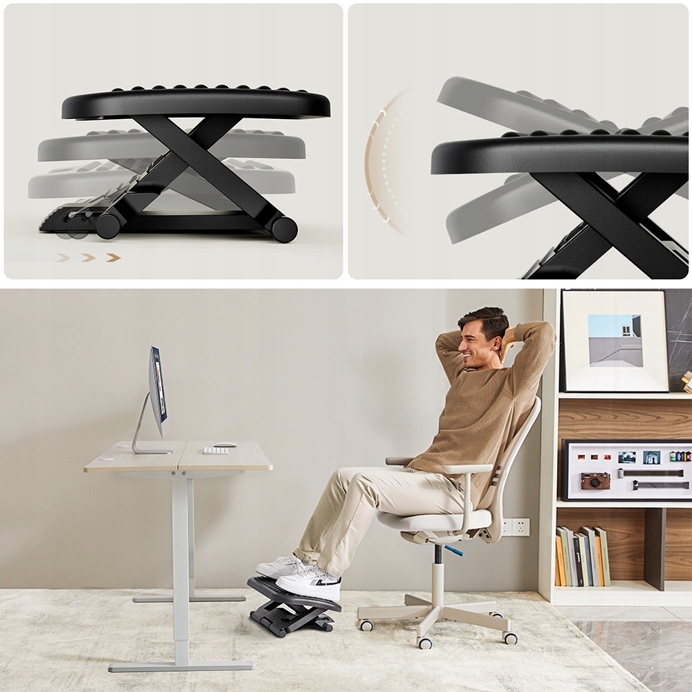 Ця піжка допомагає покращити поставу тіла, сидячи, піднімаючи ноги і встановлюючи коліна в одній лінії з стегнами. Оскільки правильна постава сидіння зменшує навантаження на ноги, стегна, талія та назад, підставка може зробити роботу в офісі більш комфортним.