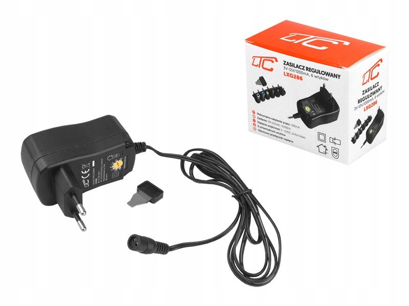 Стабілізоване джерело живлення дозволяє живити пристрої, струм споживання яких не перевищує 1200 мА. Регульовані значення вихідного струму 3 / 4,5 / 5 / 6 / 7,5 / 9 / 12 В роблять цей блок живлення неймовірно універсальним пристроєм. Джерело живлення можна використовувати для живлення таких пристроїв, як: портативні радіостанції, програвачі компакт-дисків, електричні іграшки, мобільні телефони, клавіатури, відеоігри та багато інших пристроїв, які відповідають поточним параметрам.