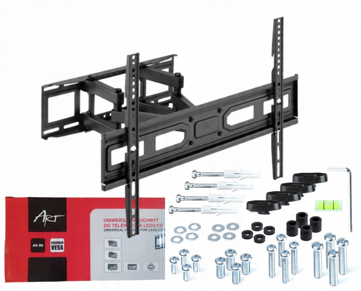 РЕГУЛЬОВАНЕ КРІПЛЕННЯ ДЛЯ ТВ ВІШАЛКА 32-70 ДЮЙМОВ НАСТІННА З РІВНЕРОМ + НАБІР ШТИРІВ ТА ГВИНТІВ ДЛЯ Кріплення до телевізора