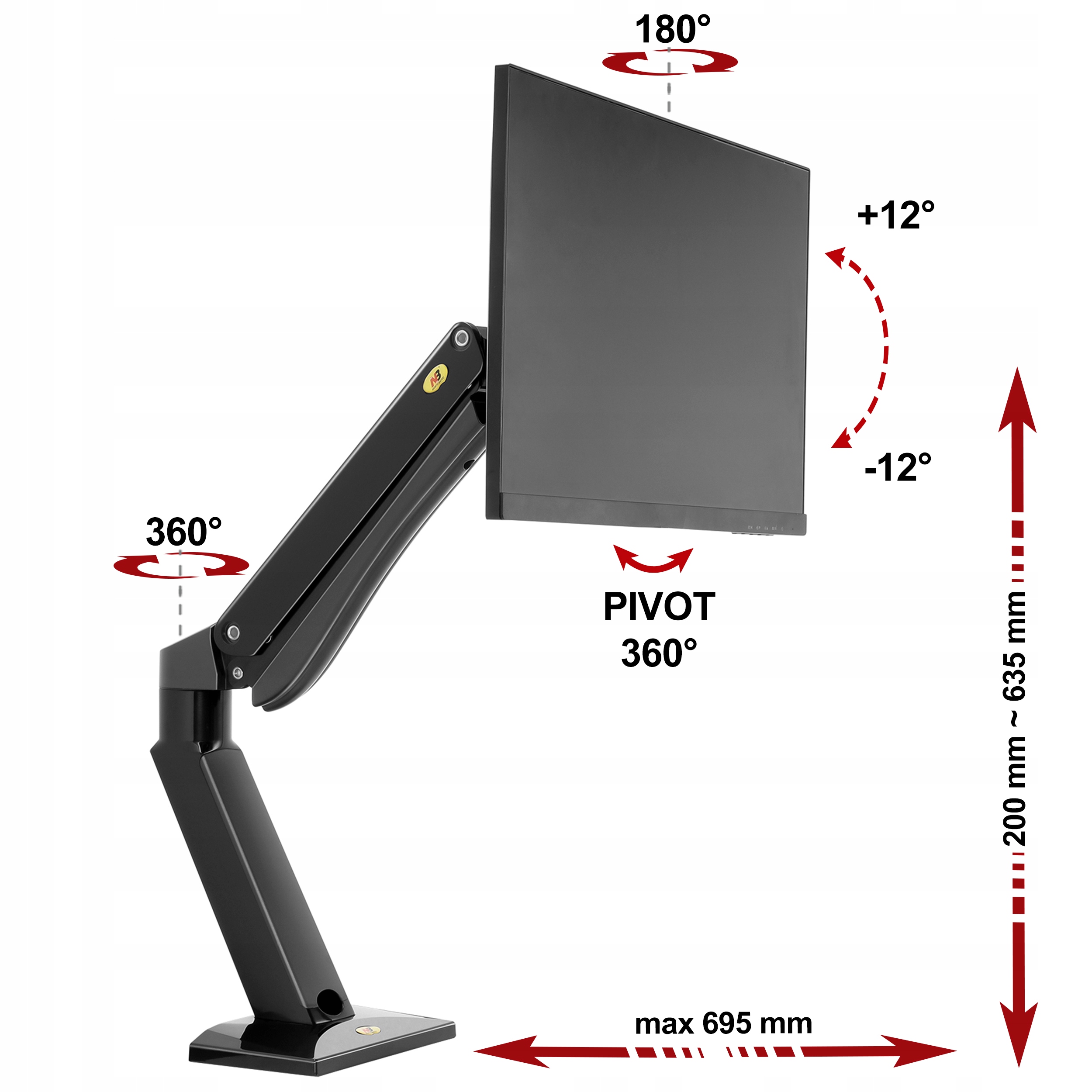 Поворотне настільне кріплення для РК-світлодіодних моніторів із повним 3D-регулюванням і плавним регулюванням висоти за допомогою газової пружини.