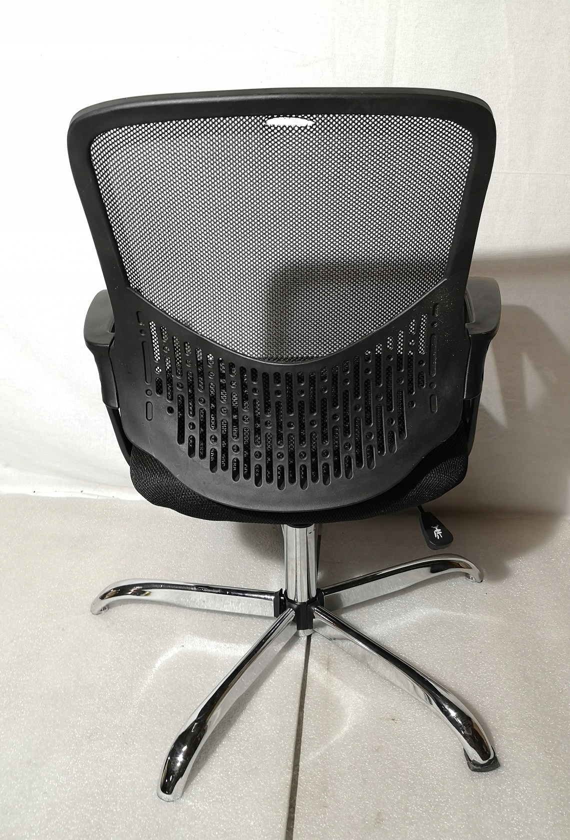 Окрім опори для нижньої частини спини та контурних підлокітників, м’яко вигнута спинка крісла має лише сітчасті секції.