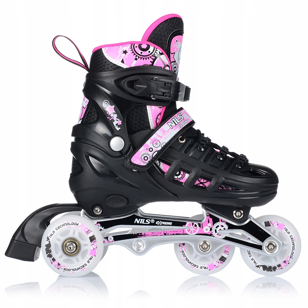 Роликові ковзани NH10905 — це справжнє задоволення від катання. Завдяки можливості переміщення додаткового колеса на задню вісь, роликовий ковзан функціонально перетворюється на роликовий ковзан. Таке рішення допоможе самим маленьким фігуристам зробити перші кроки в цьому виді спорту. У свою чергу, установка додаткового колеса на передню вісь перетворює виріб на роликовий ковзан. Ролик оснащений спеціальним алюмінієвим полозом і гальмом, що забезпечує безпеку під час катання. У свою чергу, колеса та підшипники класу ABEC7 забезпечують нижчий опір коченню, тобто швидшу їзду.