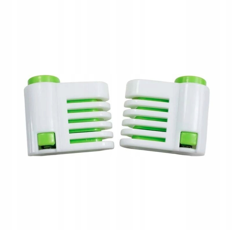 Набір із двох регульованих гачків для рівномірного розрізання тортів, тортів і бісквітів. Особлива конструкція дозволяє легко нарізати бісквіт на пластини товщиною від 7 до 30 мм. Виготовлений із пластику, легко миється та використовується. Виготовлено відповідно до європейських стандартів. У набір не входить ніж.
