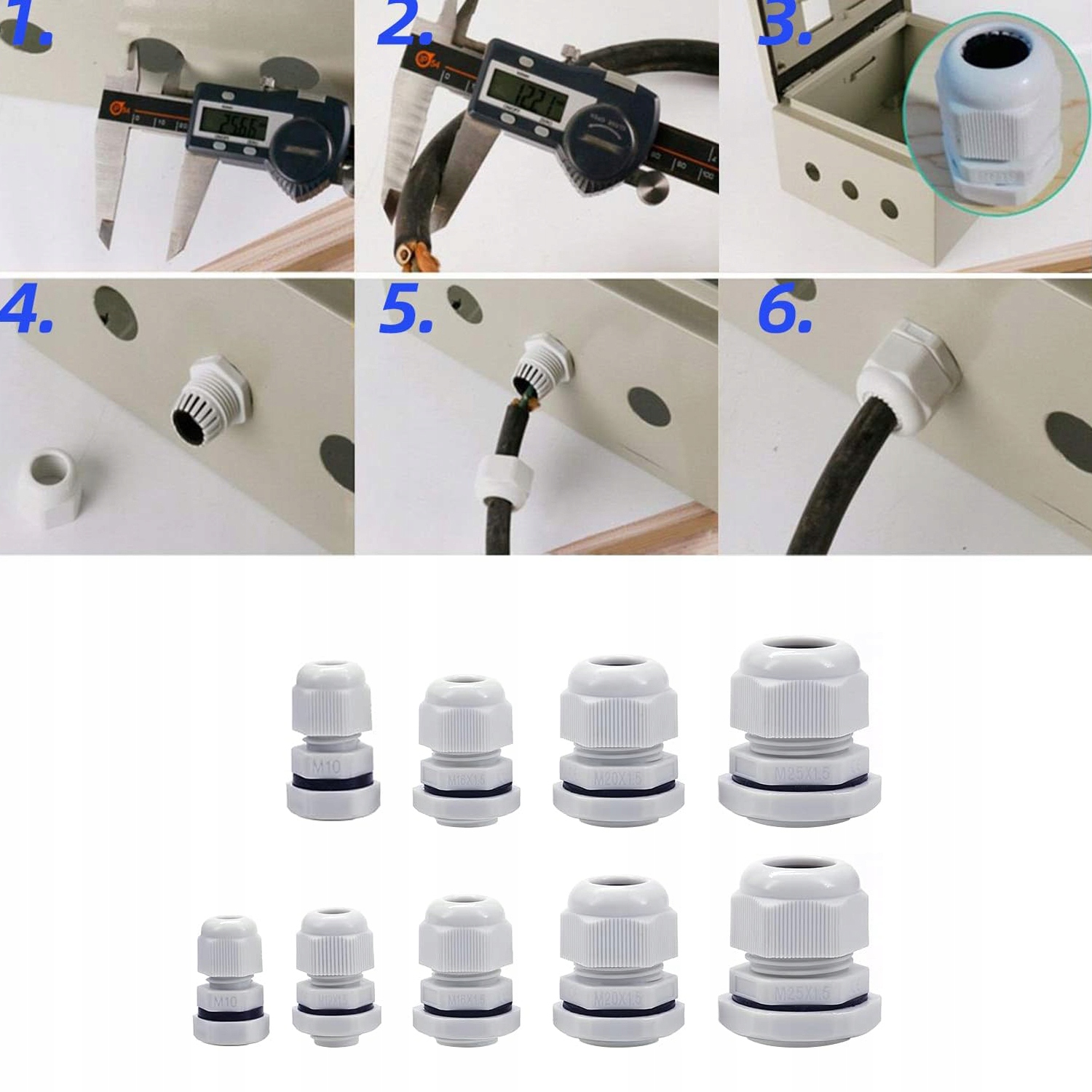 - ⚡ - 【Набір кабельних вводів відповідного розміру】: M12 / PG7 (3-6, 5 мм); M16 / PG9 (4 - 8 мм); M20 / PG13.5 (6 - 12 мм); М25 (12 - 15 мм). Температура навколишнього середовища: статична від -40 ℃ до 100 ℃, короткочасна до 120 ℃; динамічна від -20 ℃ до 80 ℃, короткочасна до 120 ℃.