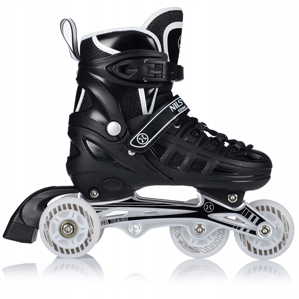 Роликові ковзани NH10905 — це справжнє задоволення від катання. Завдяки можливості переміщення додаткового колеса на задню вісь, роликовий ковзан функціонально перетворюється на роликовий ковзан. Таке рішення допоможе самим маленьким фігуристам зробити перші кроки в цьому виді спорту. У свою чергу, установка додаткового колеса на передню вісь перетворює виріб на роликовий ковзан. Ролик оснащений спеціальним алюмінієвим бігуном і гальмом, що забезпечує безпеку під час катання. У свою чергу, колеса та підшипники класу ABEC7 забезпечують нижчий опір коченню, тобто швидшу їзду.