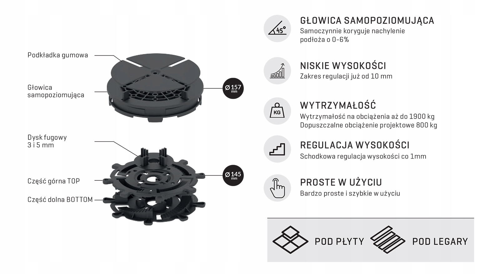 Завдяки новому дизайну цей маленький кронштейн відкриває багато нових можливостей для будівництва терас. Його крокове регулювання працює шляхом обертання двох половинок кронштейна в протилежних напрямках. Це призводить до пропуску наступних зубів, а брекет піднімається або опускається на 1 мм.