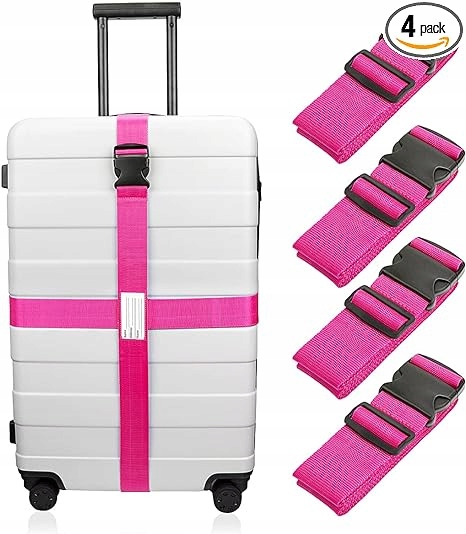Представляємо набір із чотирьох регульованих ременів для валізи, щоб надійно закріпити ваш багаж під час подорожі.