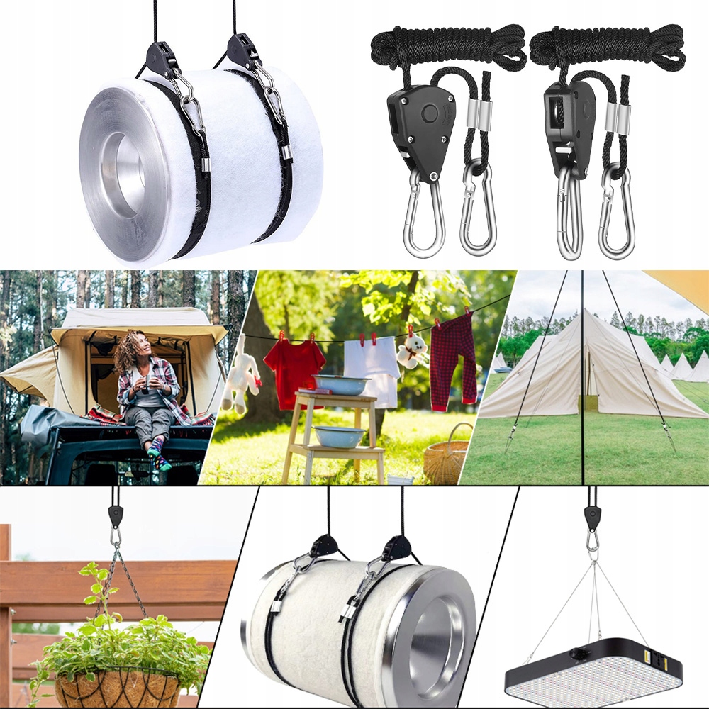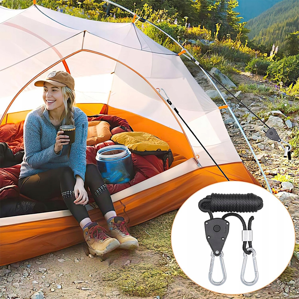 🏕 Високе регулювання - завдяки металевому механізму ви можете легко відрегулювати довжину мотузки (2 м) та заблокувати його у вибраному елементі.