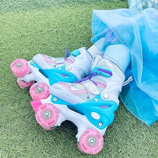 ➡️ Регульовані розміри: роликові ковзани Runcinds створені, щоб рости разом з вашою дитиною. Кожна модель забезпечує точне регулювання в діапазоні чотирьох розмірів, що робить їх ідеальним вибором для швидко зростаючих ніжок маленьких дівчаток. Завдяки цьому ви можете бути впевнені, що роликові ковзани прослужать вам довго.