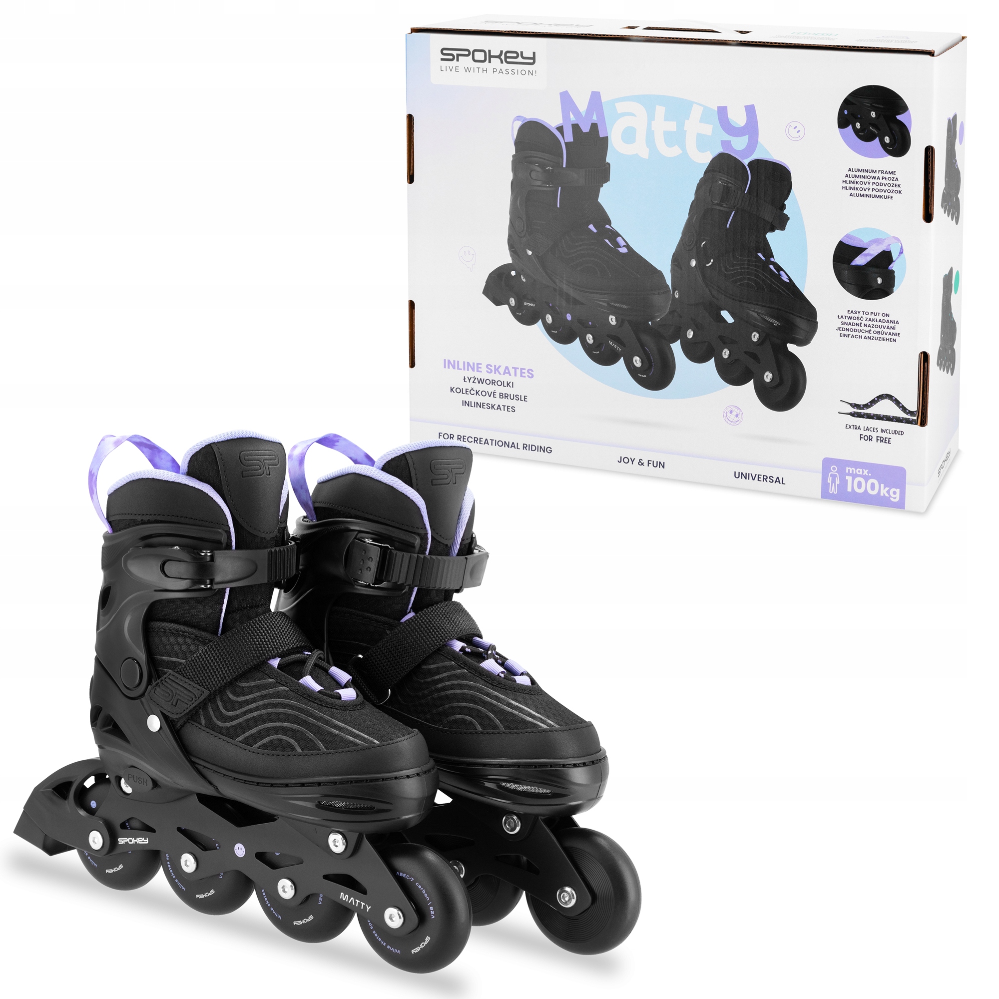 Регульовані роликові ковзани Spokey MATTY — найкращий вибір як для навчання їзді, так і для вдосконалення навичок! Вони були створені, щоб відкрити вашу пристрасть до катання на ковзанах - якщо ви хочете почати свою пригоду, вони допоможуть вам освоїти основи. І якщо вони вам вже добре відомі, MATT стане ідеальним вибором для рекреаційної та динамічної їзди. Все це завдяки використанню найкращих параметріві сучасних технологічних рішень!