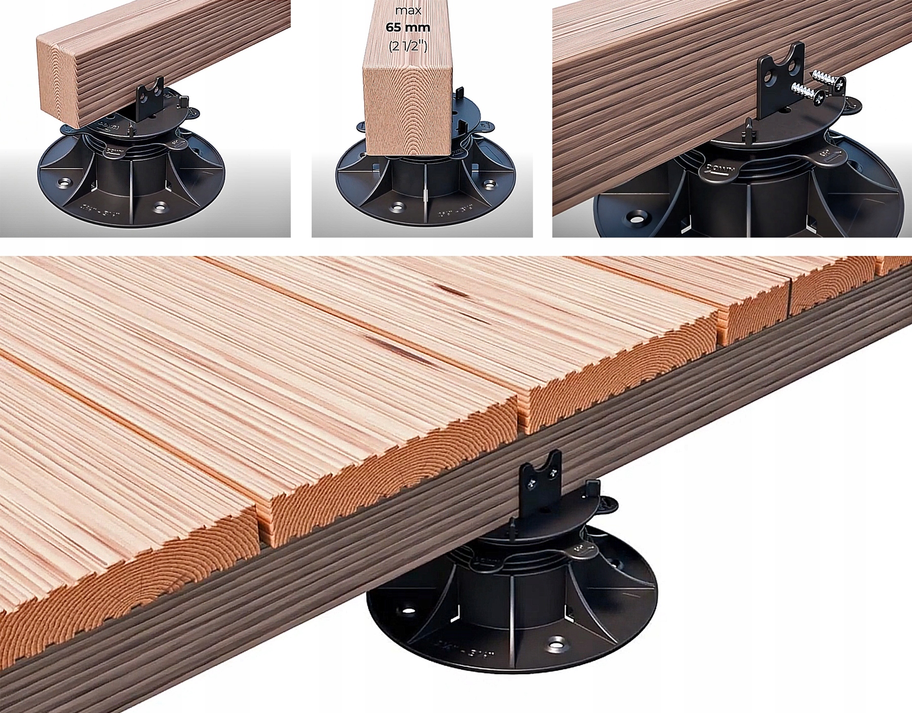 Ви можете відрегулювати висоту кронштейна від 40 до 80 мм і будь -яким чином додати необхідні елементи. Тільки ви вирішуєте, як виглядає ваша тераса.