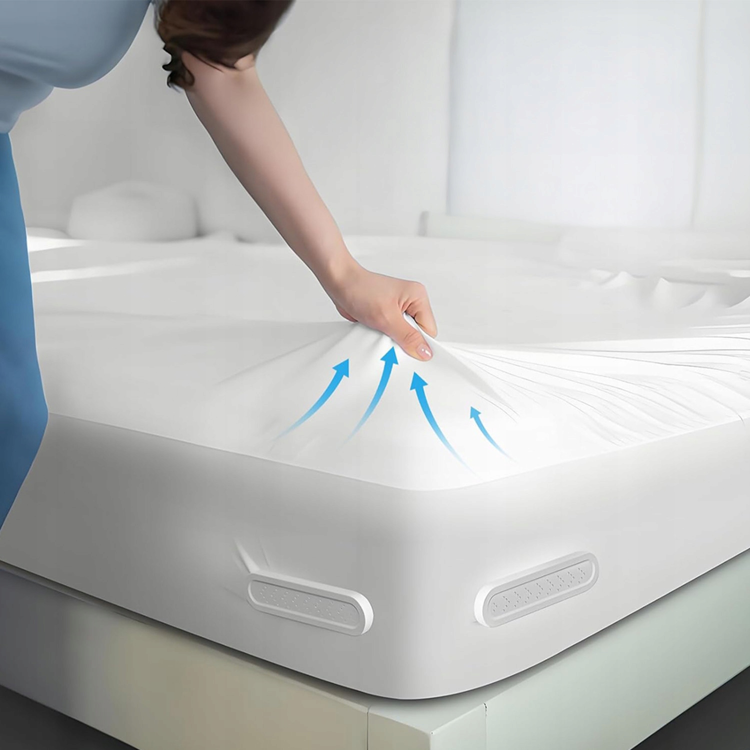 - ✔️Легко встановити, просто прикріпіть його до чотирьох кутів матраца, без складних операцій, заощаджуючи час і зусилля.