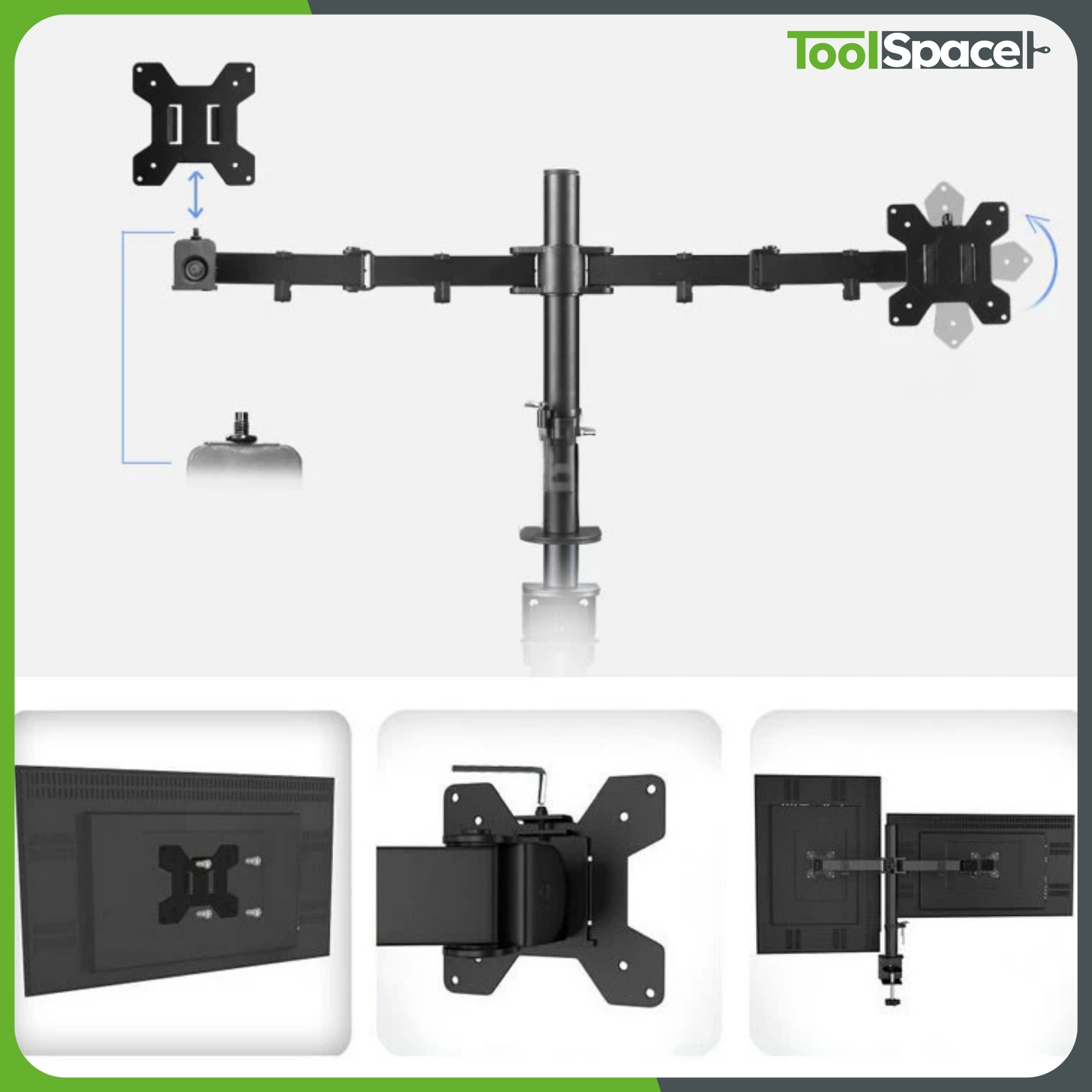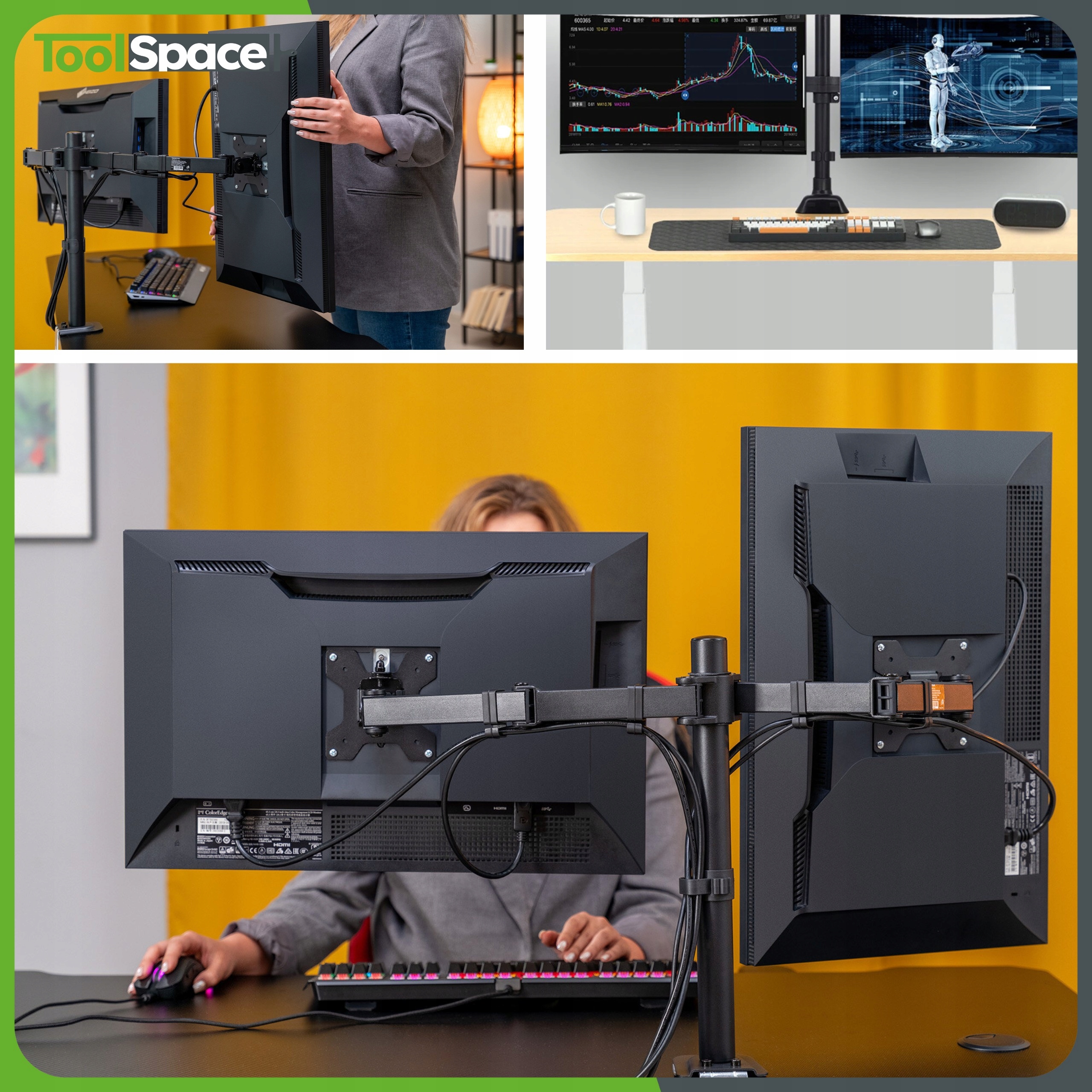 Надміцний тримач подвійного монітора | Універсальний | Регульований 3D | до 27" і 8 кг | СТАБІЛЬНИЙ ТА МІЦНИЙ