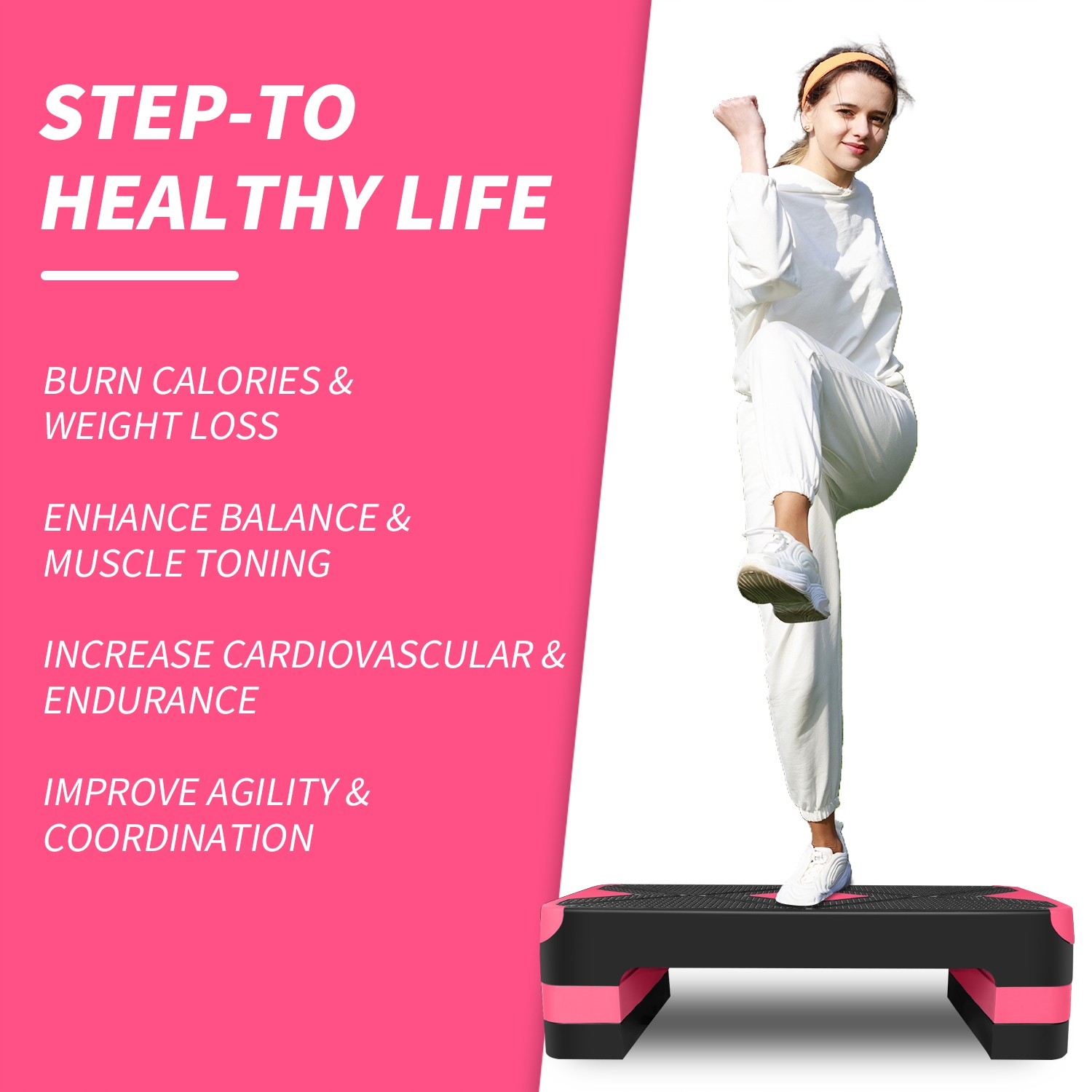 [анти -слизування та подряпина] текстурована поверхня є анти -слизом і амортизуючим, забезпечуючи стабільність на кожному кроці. Цей кроковий фітнес оснащений гумовими ногами, що не належать до ковзання, на кожній платформі, яка запобігає ковзанню, забезпечує стабільність та захищає від подряпин.