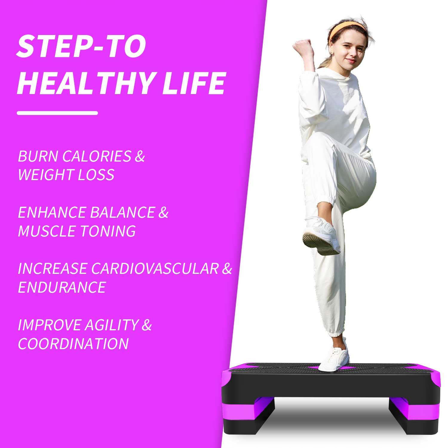 【3 висоти】Оснащено платформою розміром 68,5 см/27" (Д) x 27,94 см/11" (Ш) x 10 см/4" (В) і 4 платформами. Завдяки платформам ви можете регулювати висоту платформи від 10 см/4" до 15 см/6" до 20 см/8", що дозволить вам випробувати себе та ускладнити тренування. Підходить для будь-якого віку та рівня фізичної підготовки.
