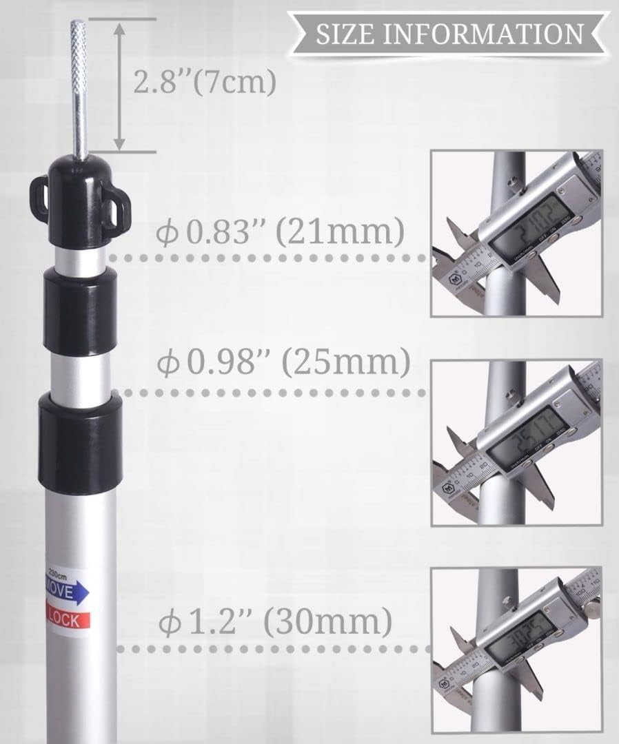 коригування та легкість: бруски для кемпінгових брезентів забезпечують великий діапазон коригування від 90 см до 230 см з 3 секціями. Кожна палиця важить лише близько 519 г. Їх можна взяти з вами скрізь