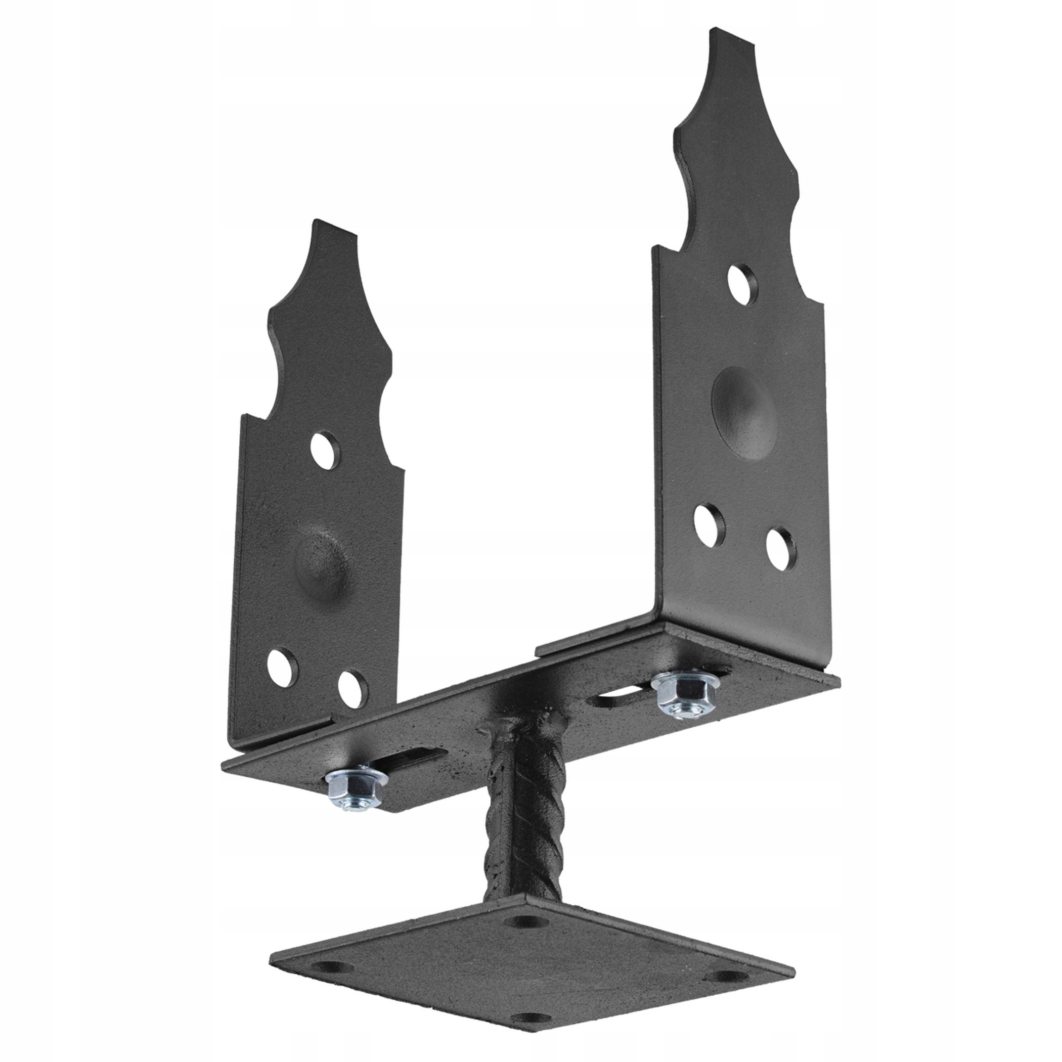 Просте регулювання за допомогою оцинкованих гвинтів і гайок дозволяє кріпити стовпи та дерев'яні елементи товщиною до 160 мм.