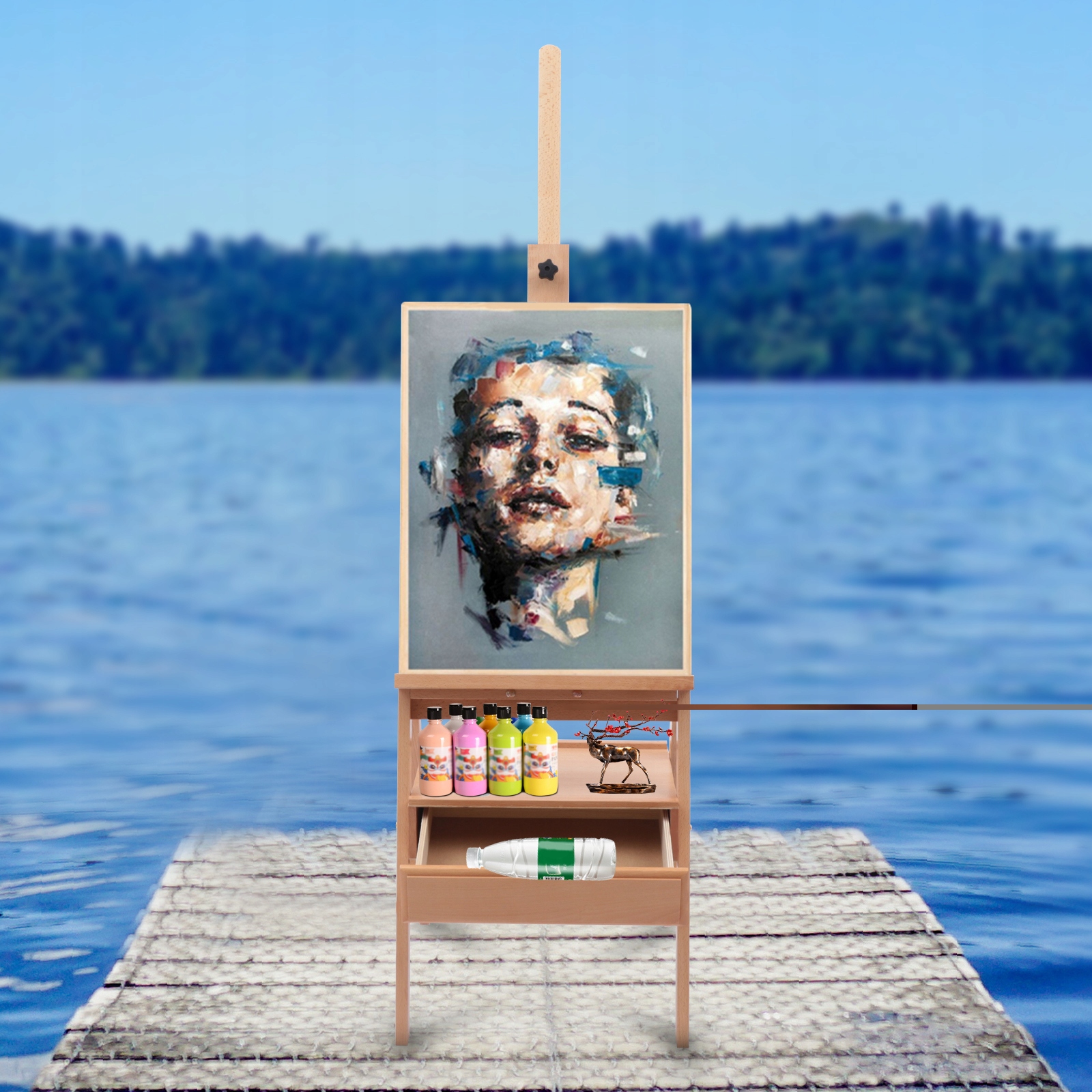 Хороший помічник у малюванні: цей мольберт із Н-подібною рамою має шухляду, куди можна покласти свої звичайні інструменти для малювання, тож він може привести студію в порядок. Під час малювання зручно брати інструменти з собою, не хвилюючись, що не вистачить місця для розміщення багатьох інструментів для малювання.