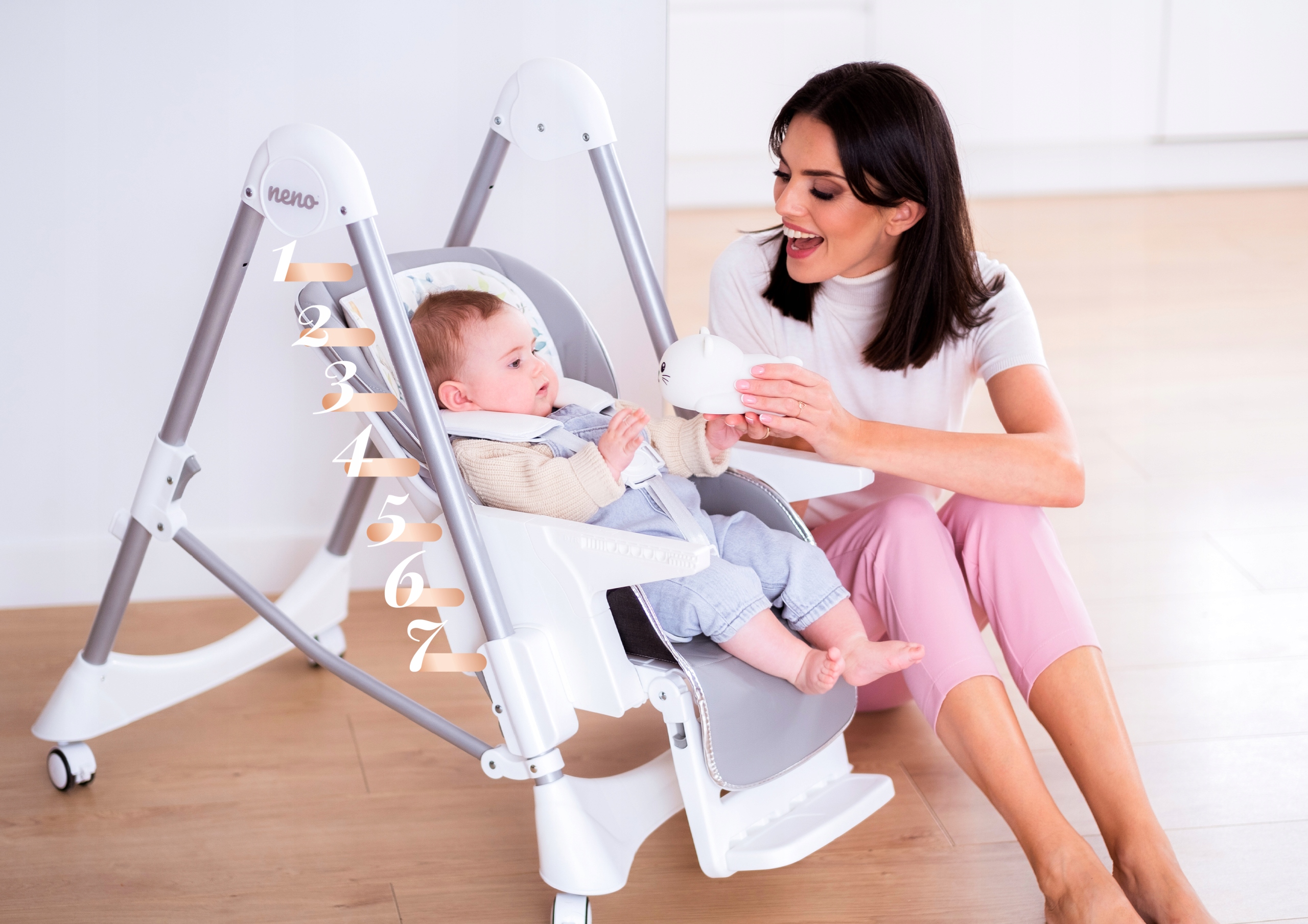 Пристосуйте крісло Sedi до ваших уподобань та уподобань вашої дитини. Ви можете вносити всі зміни самостійно, що дає вам багато можливостей. Вибирайте найкращу для себе конфігурацію та насолоджуйтесь часом, проведеним разом!