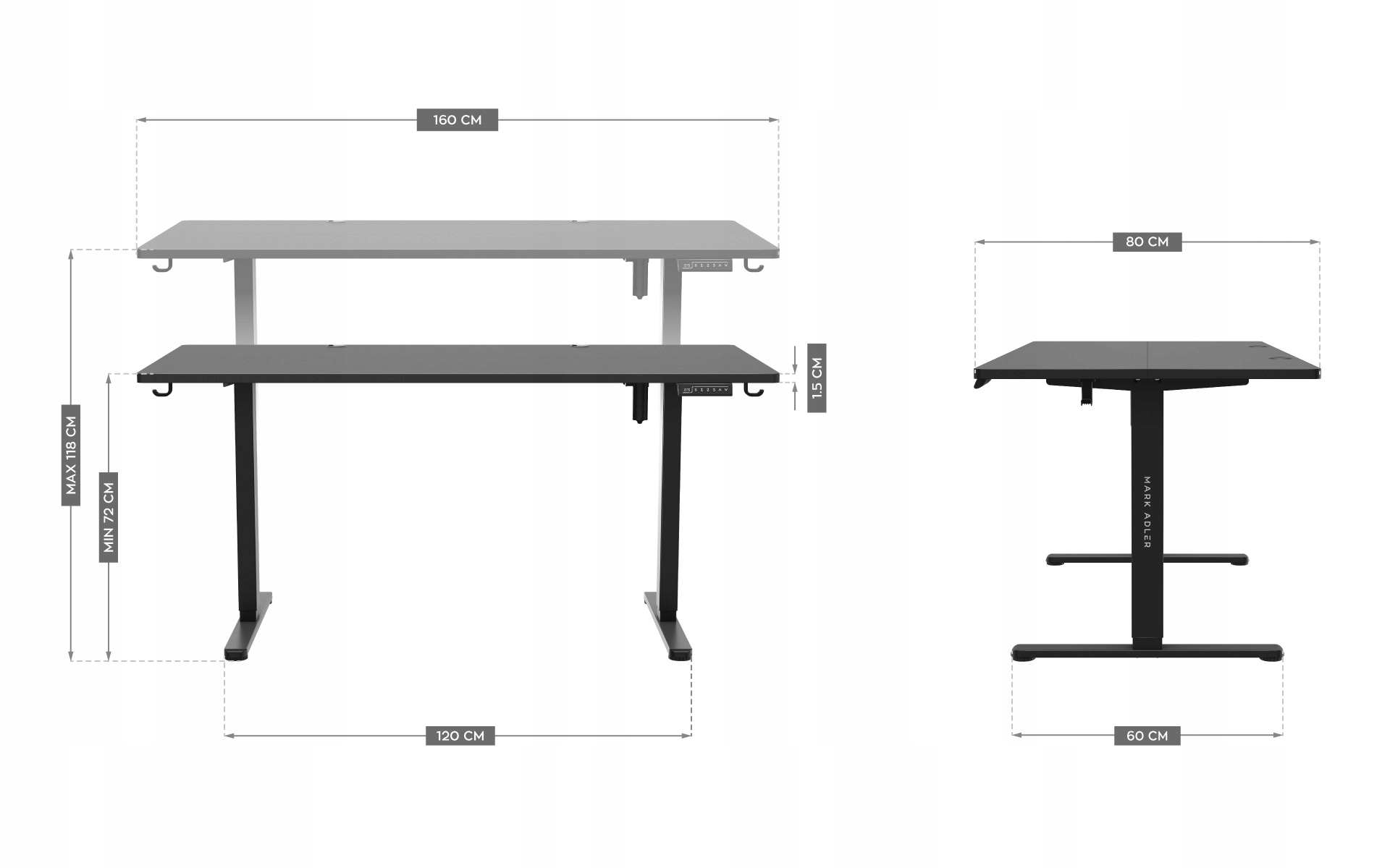 РЕГУЛЬОВАНИЙ Електричний стіл 160 x 80 см Mark Adler Leader 7.6 Black