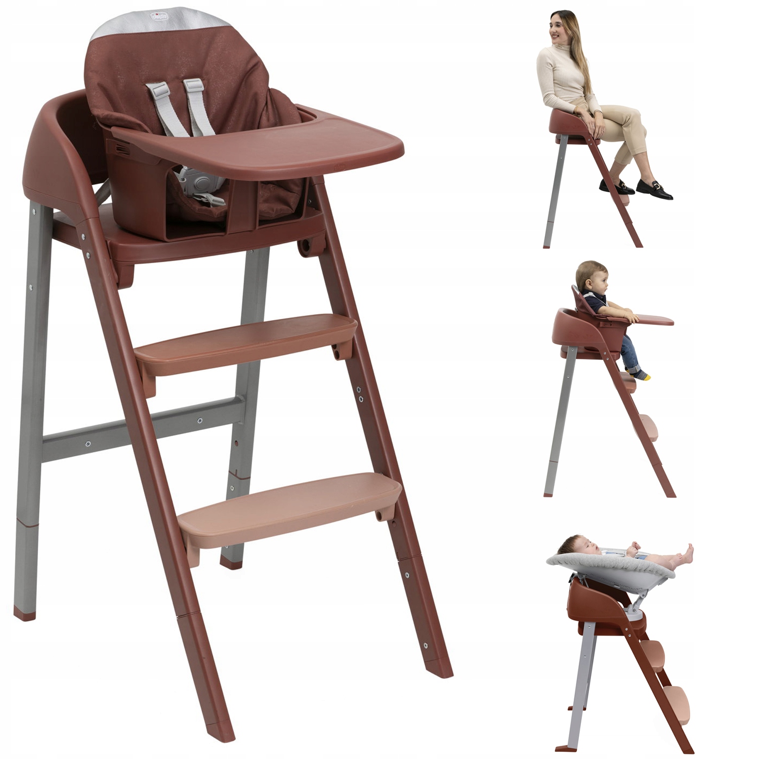 Завдяки трьох конфігураціях можна використовувати як класичне класичне крісло для малюка (6-36 місяців), ергономічне сидіння для старшої дитини (до 40 кг) та комфортне крісло для дорослих (до 110 кг).