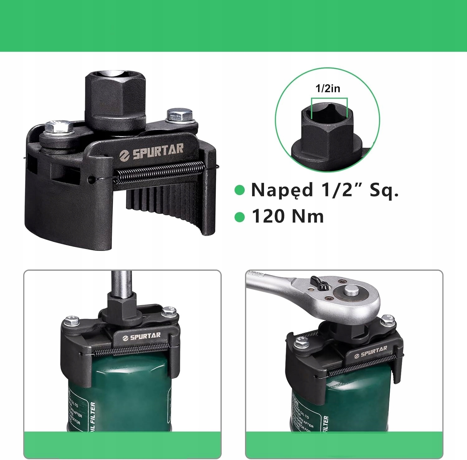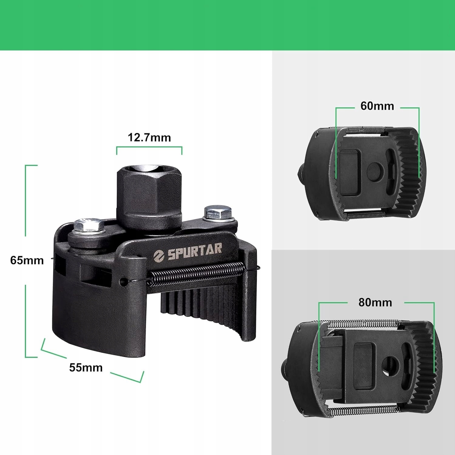 Використання: Регульований ключ для масляного фільтра Spurtar 60-80 мм допоможе вам легко видалити застряглі або занадто тугі масляні фільтри у вашому автомобілі, вантажівці, човні чи інших фільтрах двигуна. Використовуйте з приводним храповиком 1/2" (не входить до комплекту).