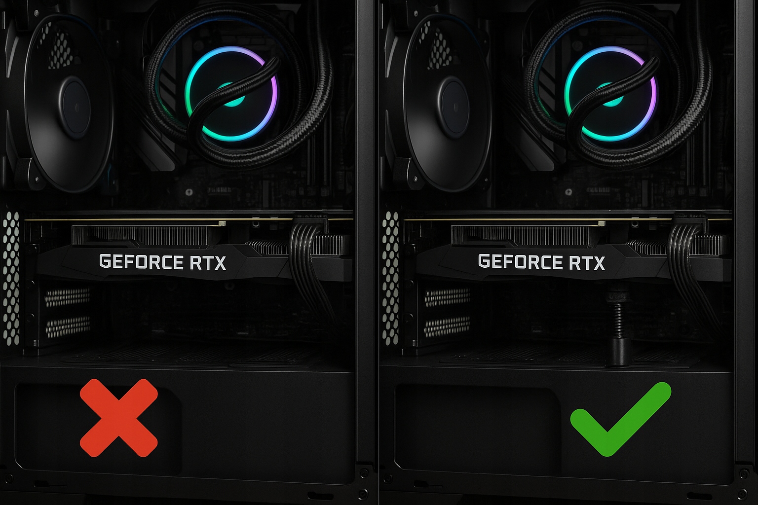 Регульований кронштейн графічного процесора є простим і ефективним рішенням проблеми "провисання графічного процесора". Мінімалістичний вигляд, ігровий характер, легке збирання.