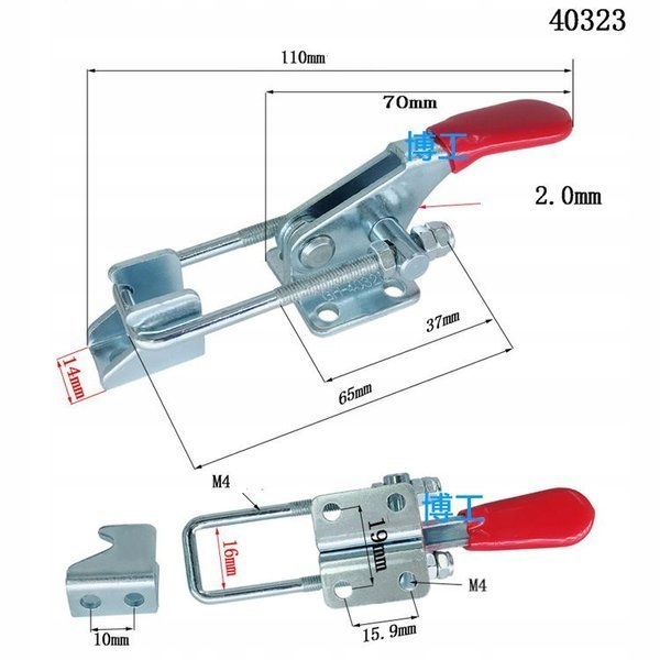 Універсальний регульований затиск із зусиллям 165 кг. Дуже практичний інструмент для захоплення предметів. Горизонтальний затискач можна використовувати в модельних майстернях, майстернях електроніки тощо. Часто використовується для кріплення ящиків для інструментів, дверей тощо.