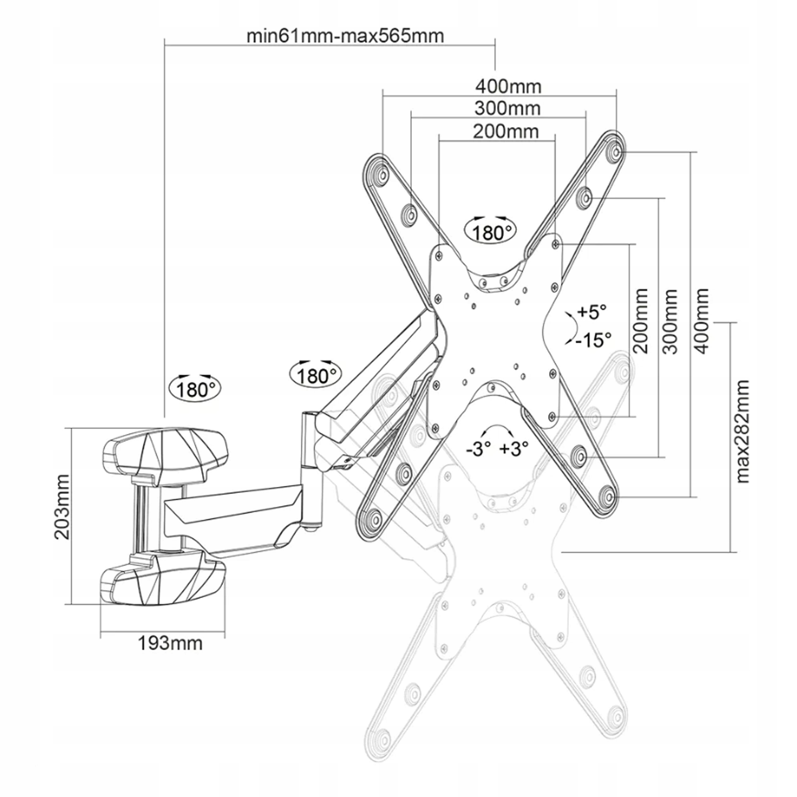 Кріплення для екранів з діагоналлю від 32" до 55", що забезпечує широкий діапазон регулювань.