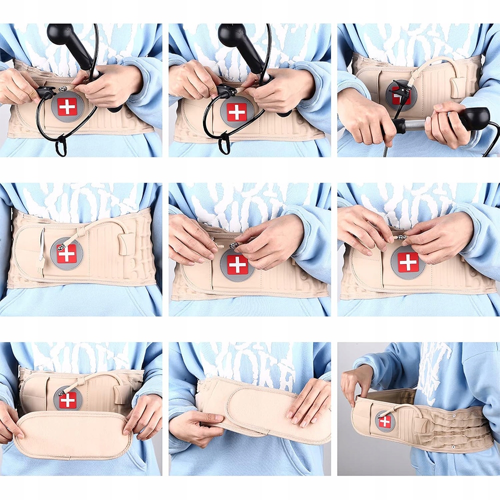 пояс має кілька повітряних стовпчиків, які, коли їх надувають, обіймають нижню частину талії, створюючи дугоподібну форму. Забезпечує ефективне полегшення болю в спині, спричиненого дисковою грижею, розтягненням поперекових м’язів, компресією поперекового нерва тощо.