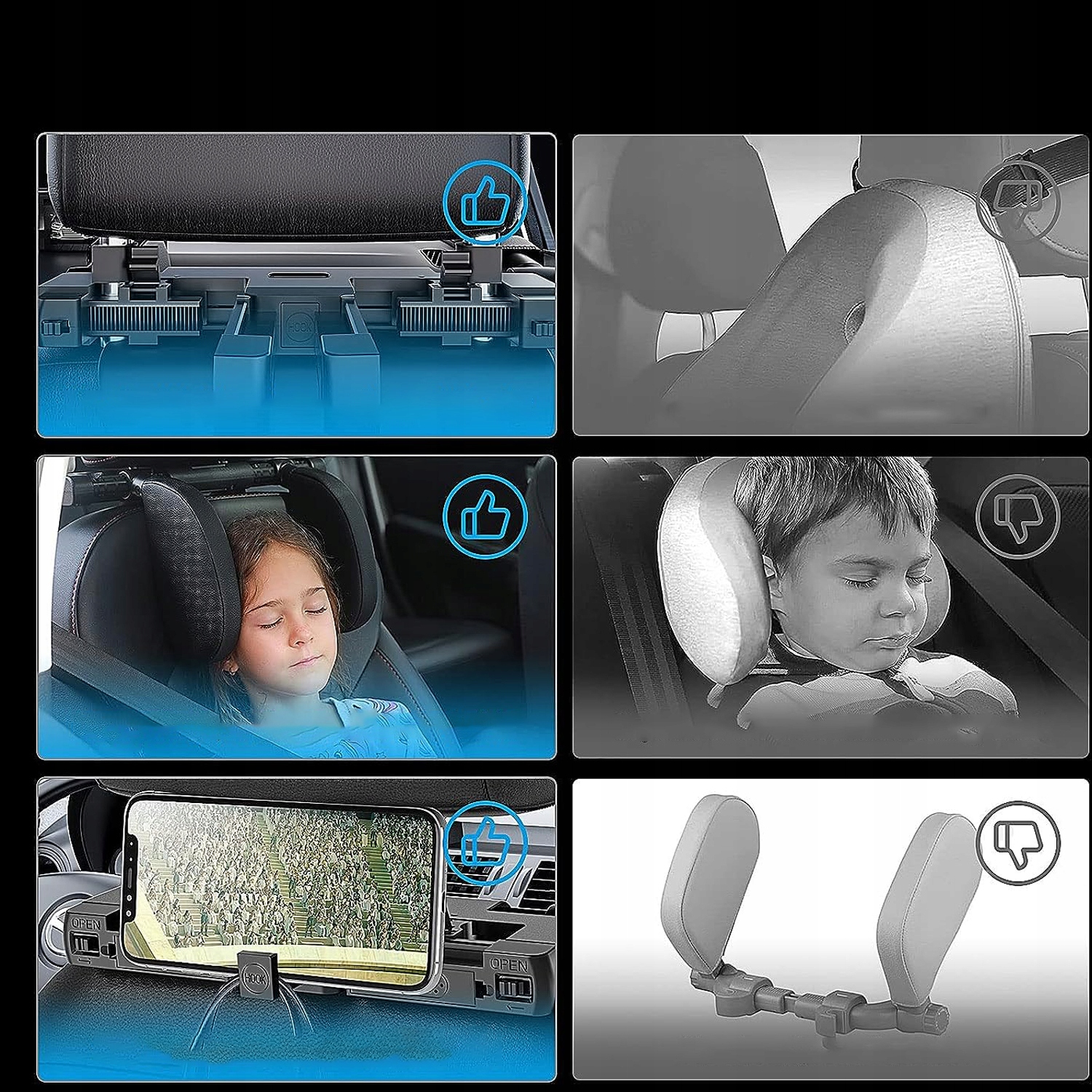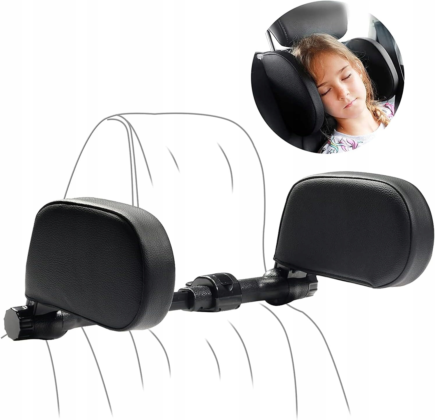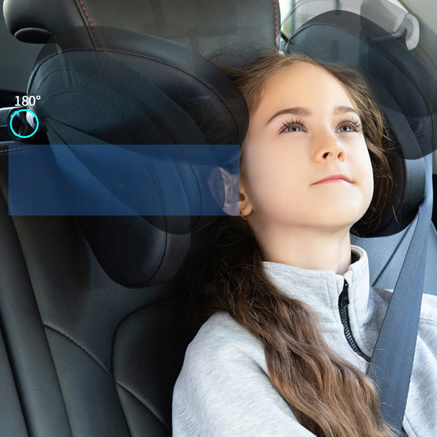 Дитячий автомобільний підголівник з ергономічним науковим дизайном підтримує та захищає голову та шию. Допомагає підтримувати здорове положення під час сну. Знімає біль у шиї. Підголівники з обох боків запобігають хитанню голови та удару об двері та вікна автомобіля.