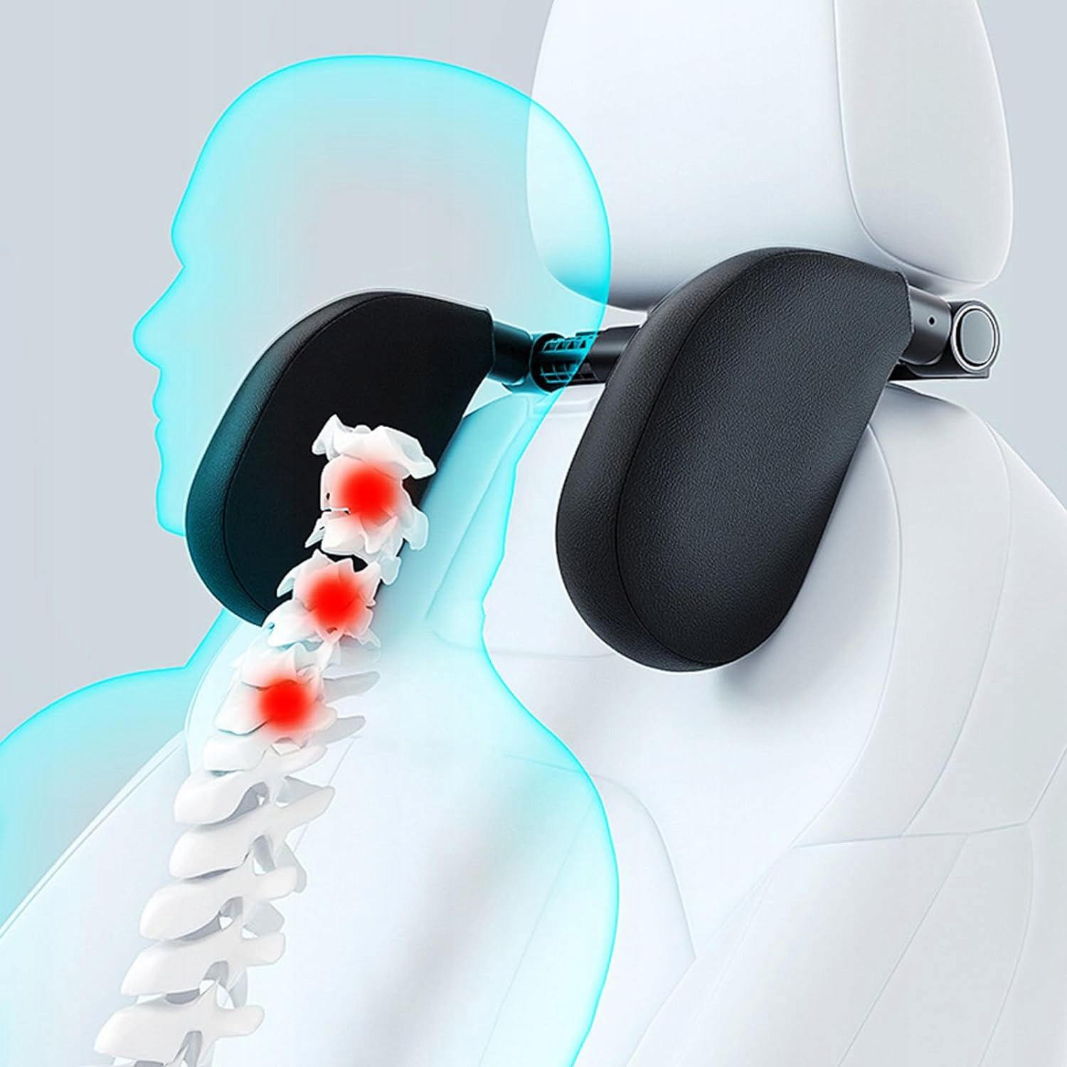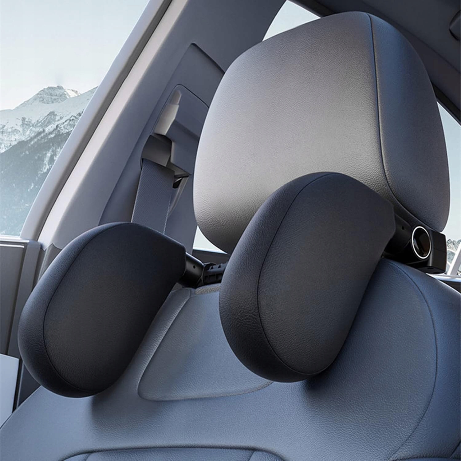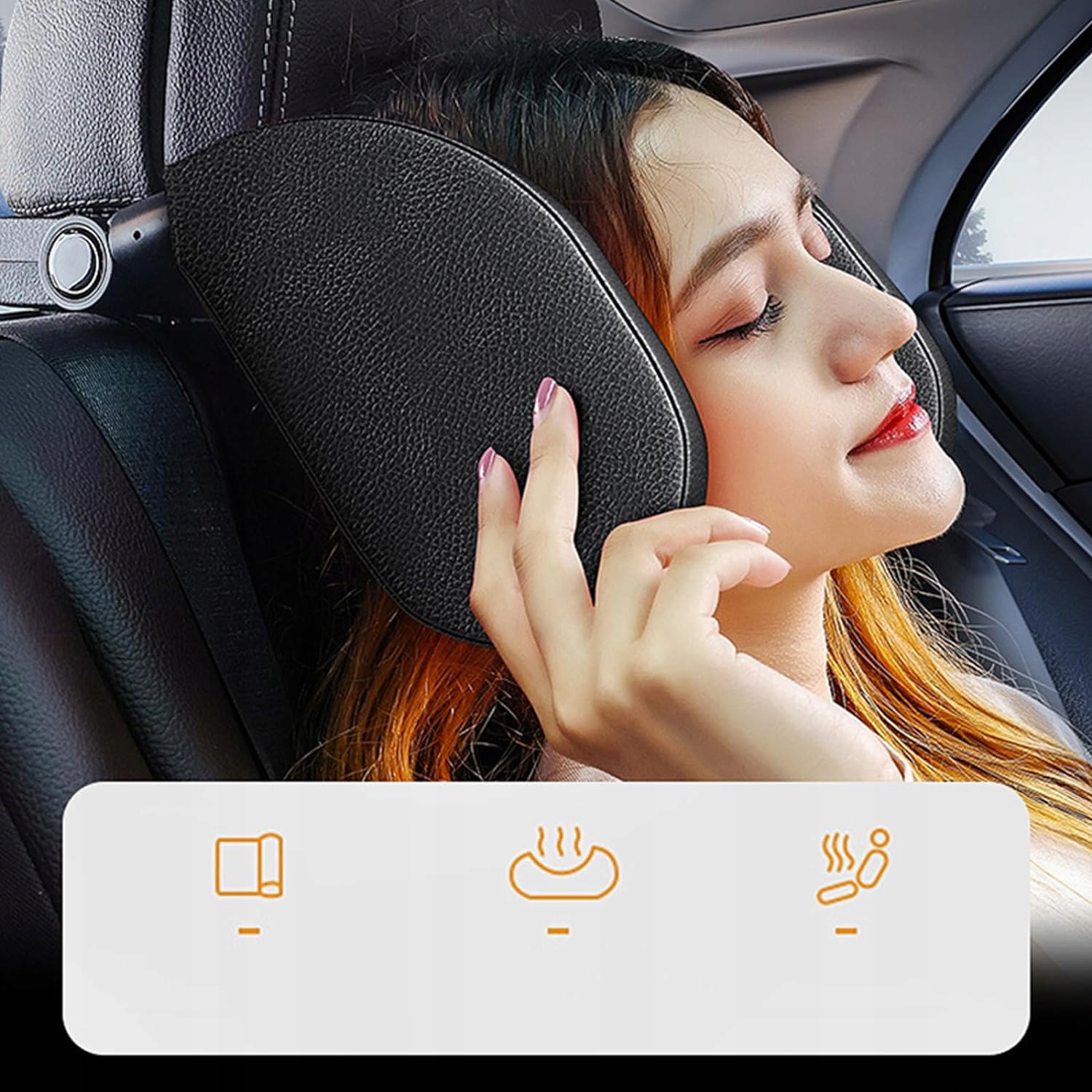Потилиця для автокрісел виготовлена з піни з пам'яттю, ABS і шкіри. Знімні бічні подушки з поліуретанової шкіри, потовщена дихаюча та тепла піна з ефектом пам’яті запобігають ударам головою, спричиненим тремтінням автомобіля під час руху.