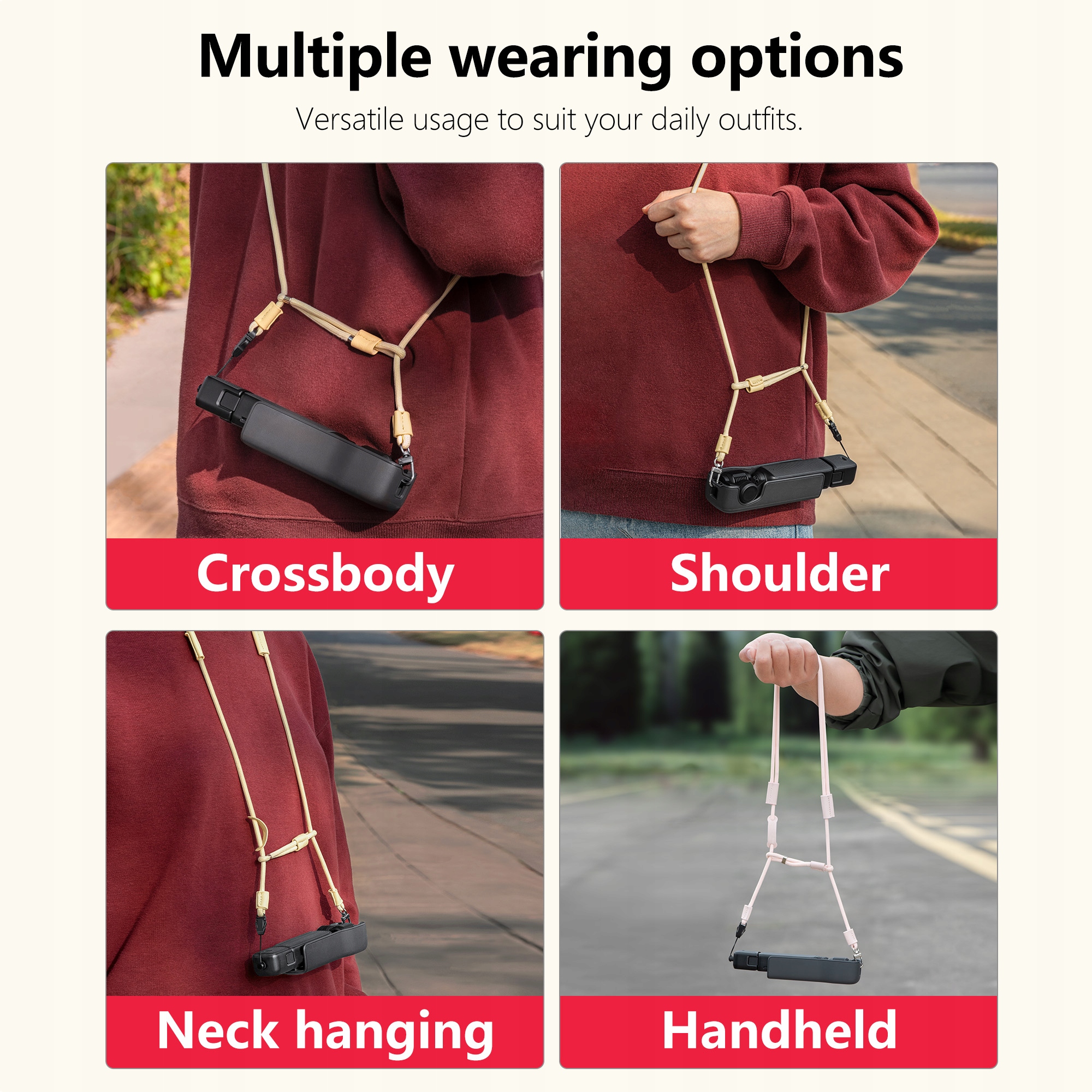 Нендистарна придатна до кишені 3: подвійний ремінь шиї до кишені DJI Osmo 3 пропонує безпечний та зручний носіння з регульованою довжиною для використання на шиї, крос -тілі або зручності. З м'якого, дихаючого поліестеру з вологою властивостями та стійкими до запахів. Crossbody або зручно.