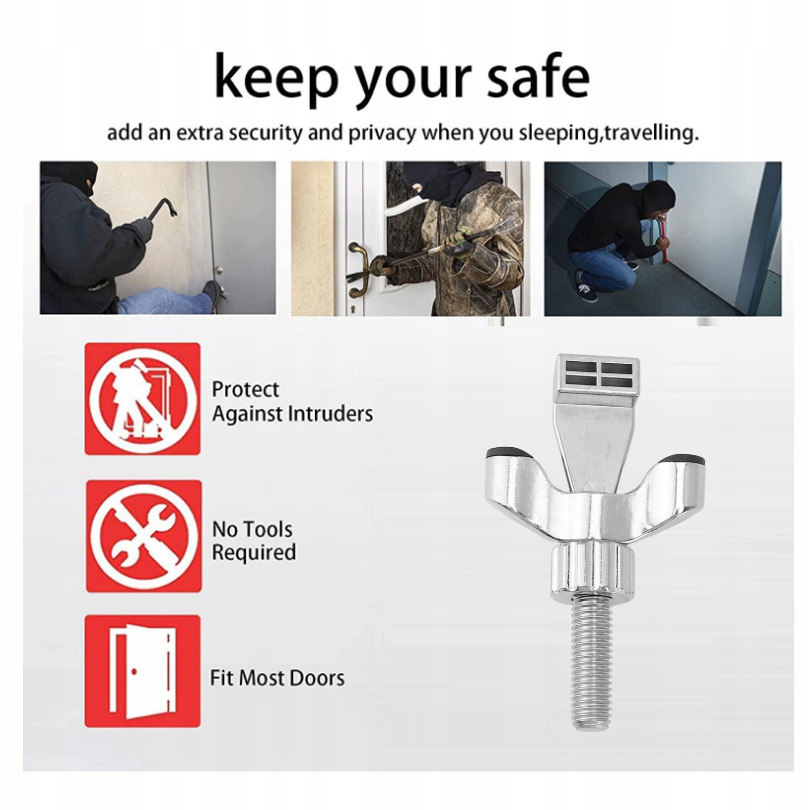 1. Безпека: забезпечте свою безпеку за допомогою цього міцного сталевого замка, який ідеально підходить для будинків, спалень, квартир, офісів або подорожей. Ідеально підходить для оренди нерухомості, готелів, студентських гуртожитків, годуючих матерів вдома тощо.