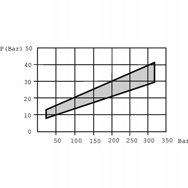 - Гістерезис = ~ 15% повної шкали (~ 30 бар)