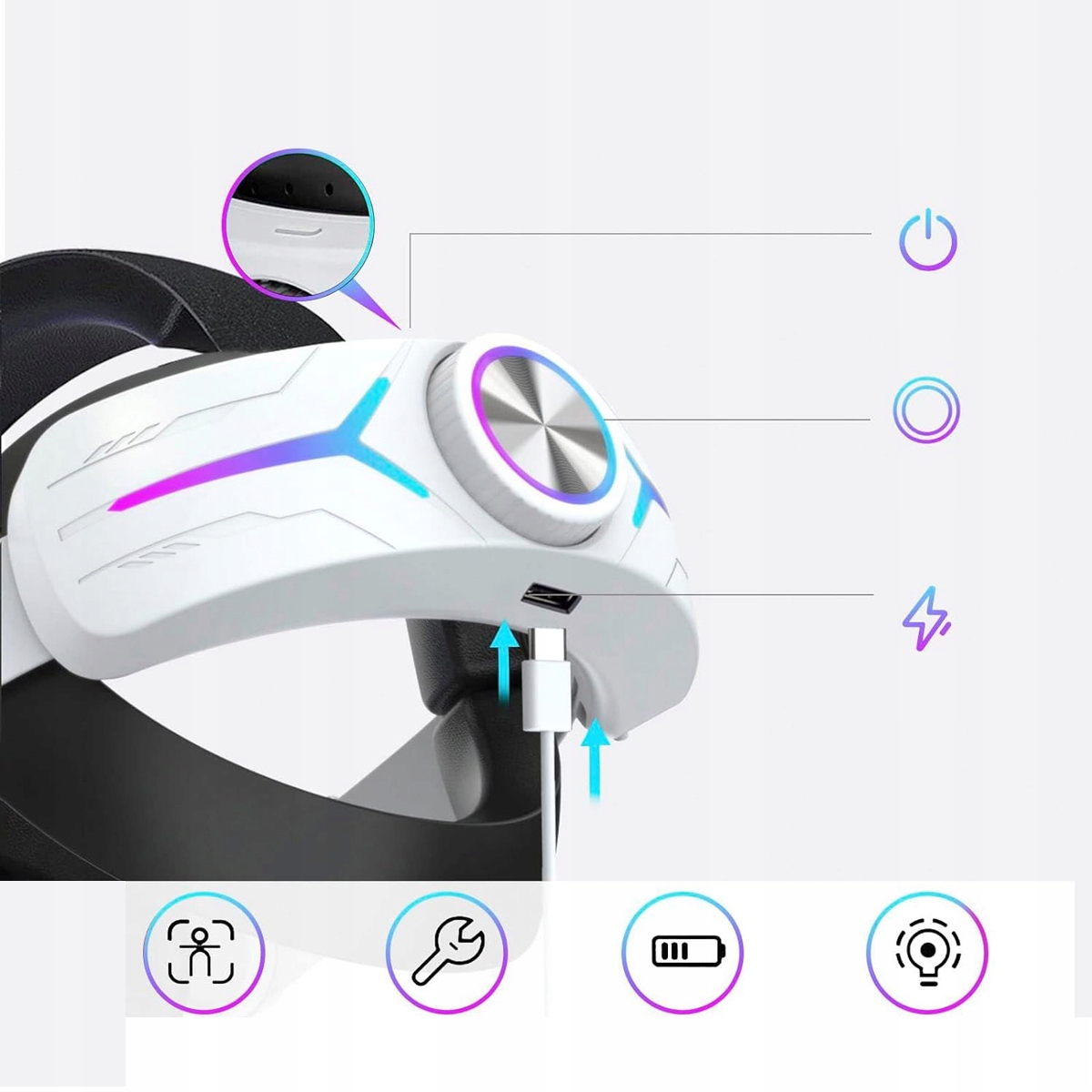 РЕГУЛЬОВАНИЙ РЕМІНЕЦЬ RGB ELITE + АКУМУЛЯТОР 8000 мАг ДЛЯ META OCULUS QUEST 3