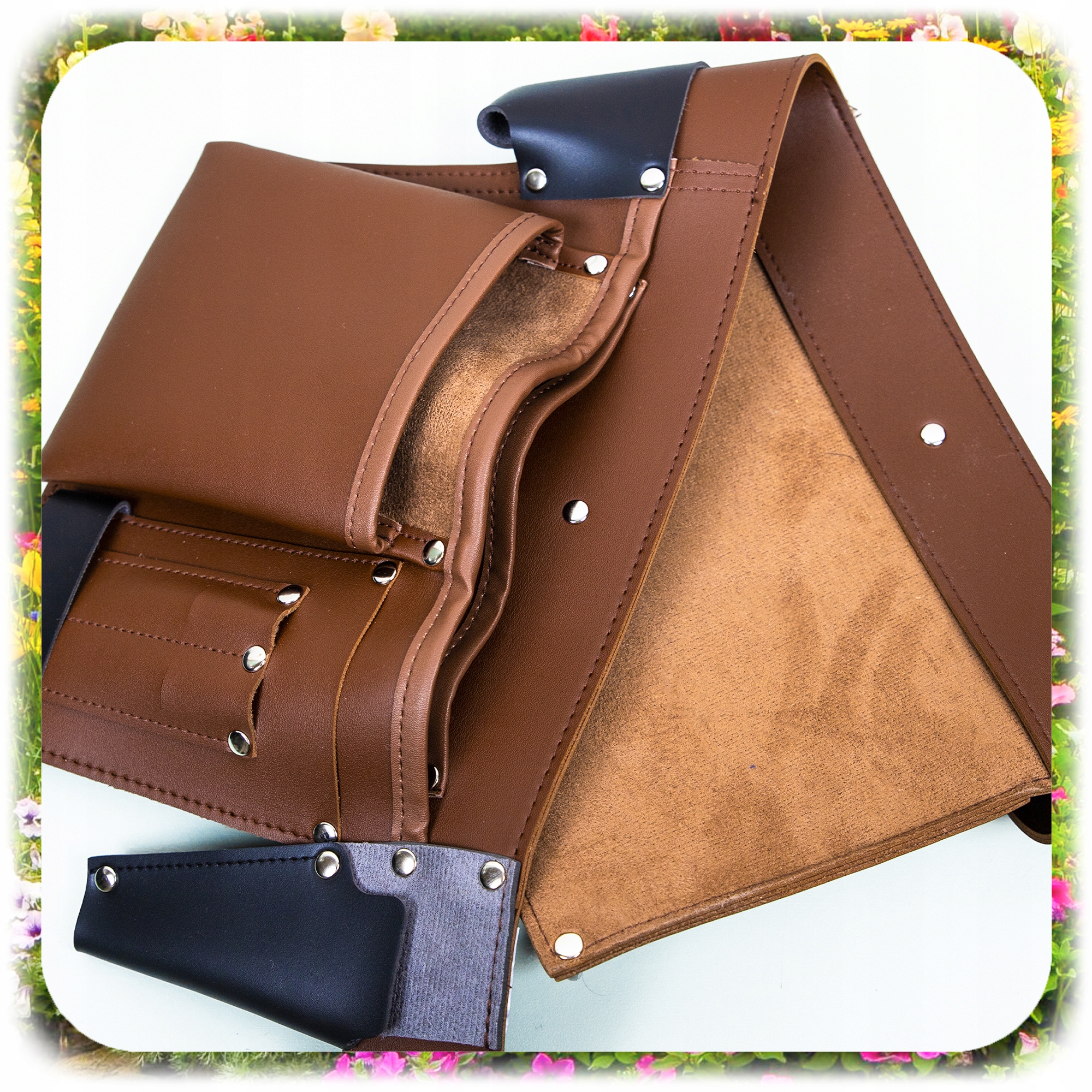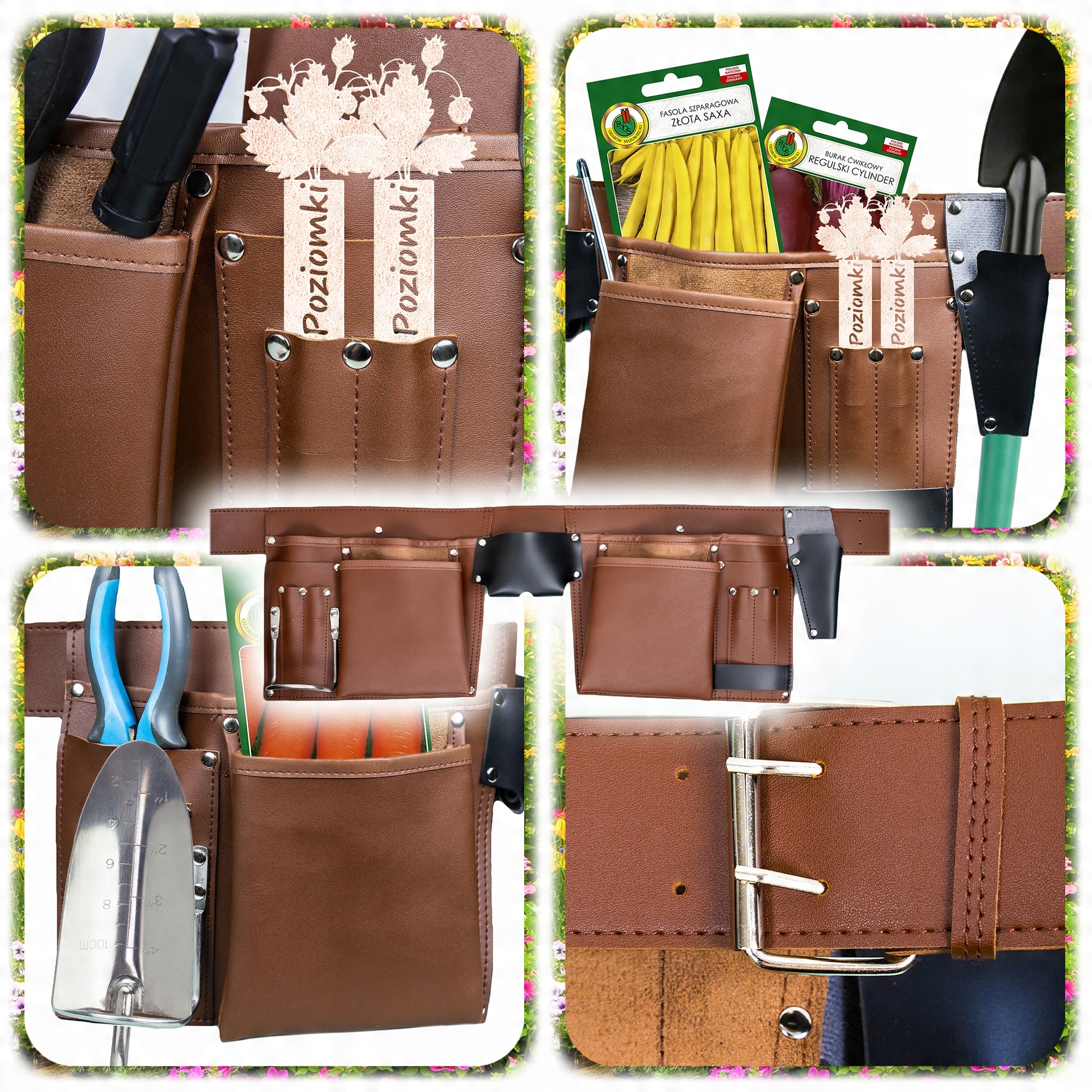 РЕГУЛЬОВАНИЙ ШКІРЯНИЙ РЕМІНЬ ДЛЯ САДОВОГО ІНСТРУМЕНТУ З 6 КИШЕНЯМИ