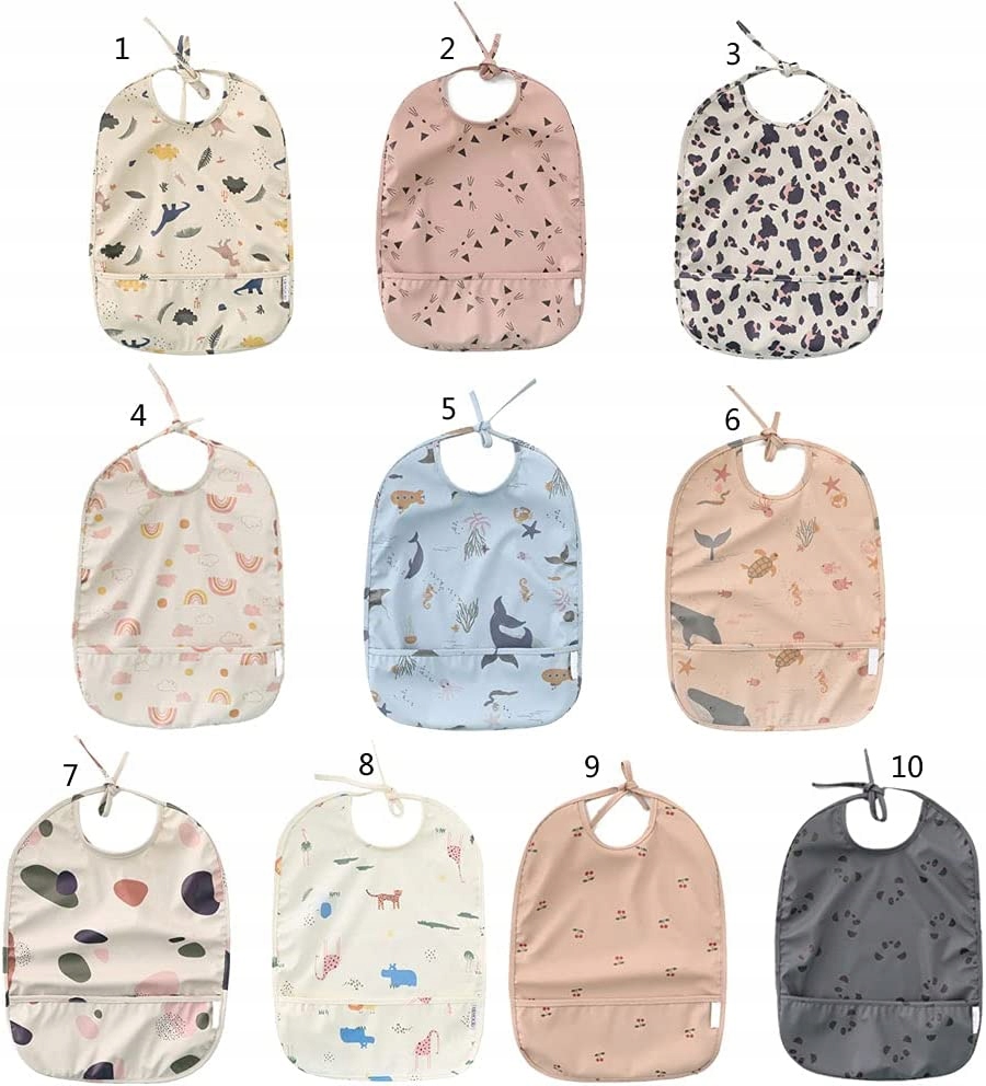 Зовнішній шар виготовлений із водонепроникного матеріалу, який може запобігти утворенню плям на одязі вашої дитини під час їжі чи малювання. Виготовлений з м'якого, натурального та безпечного поліефірного матеріалу, який не містить бісфенолу А, полівінілхлориду та фталевої кислоти. Передня велика кишеня може ефективно вловлювати залишки їжі та запобігати забрудненню одягу або зберігати дитячі іграшки, такі як брязкальця, прорізувачі тощо. Дизайн ремінця на шиї може регулювати розмір декольте відповідно до потреб дитини, що робить дитину зручнішою для носіння. linea має нейтральний малюнок. Яскраві візерунки надруковані спереду та ззаду, і одяг не линяє. Надійний як. Це найкращий подарунок для новонароджених.