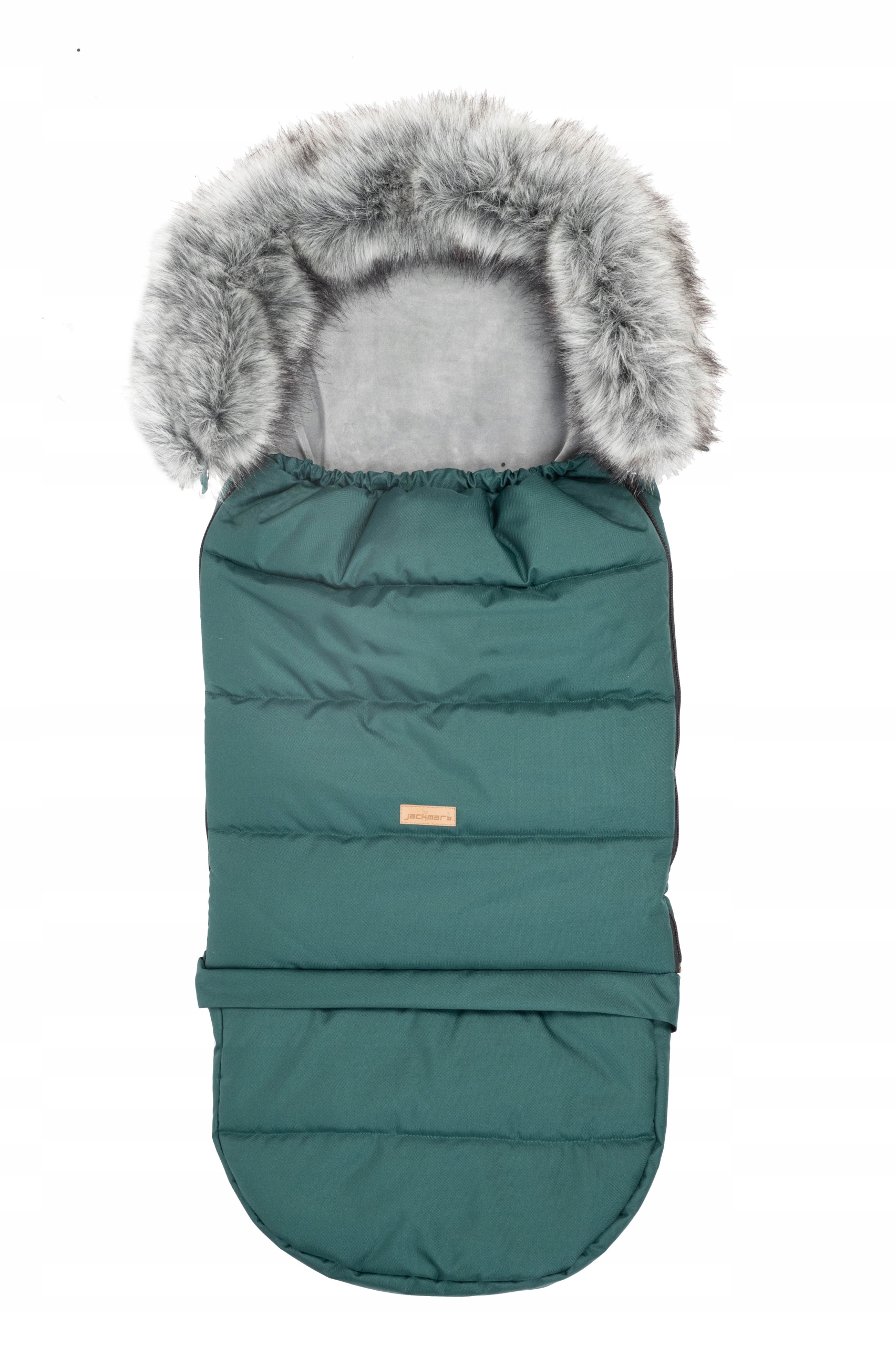 Форму спального мішка було розроблено, щоб підходити до більшості колясок і забезпечувати свободу рухів. Великий капюшон оздоблений красивим штучним хутром, схожим на натуральний песець. Це покращує тепловий комфорт і робить спальний мішок ще затишнішим. При необхідності хутро можна повністю зняти.