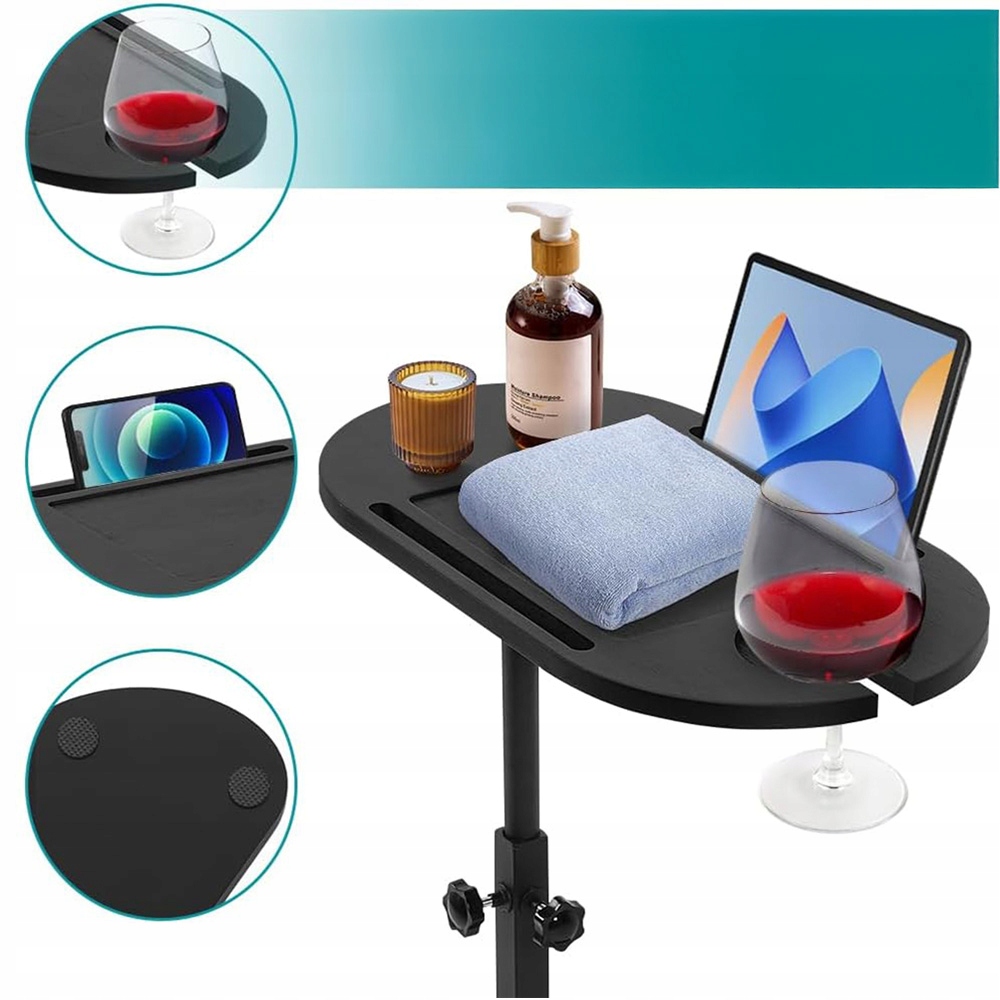 🛁🛁 Окремо стоячий стіл: Ви можете розташувати основу та піднос в одному напрямку або додати до основи деякі обтяжувачі, щоб зробити її більш стабільною. Гнучку ніжку можна регулювати вгору та вниз, щоб вона відповідала ширині ванн від 43 см до 78 см, підходить для більшості ванн, включаючи антикварні, окремо стоячі, ванни на ніжках тощо.