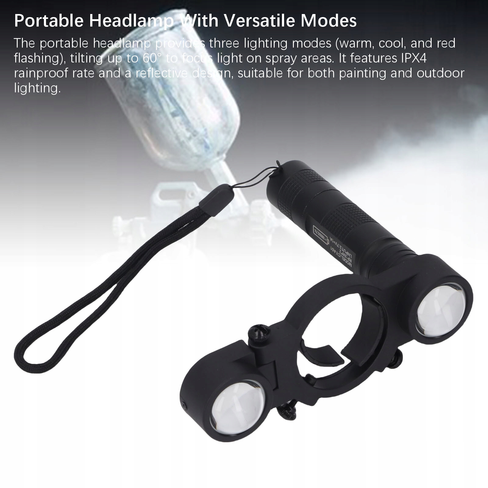 4. Портативна фара з універсальними режимами: Портативна фара забезпечує три режими освітлення (теплий, ходьба та червона миготіння), нахиляючись до 60, щоб зосередитись на зондах для душу. Він має швидкість стійкості до дощу IPX4 та світловідбиваюча структура, придатна як для живопису, так і для зовнішнього освітлення.