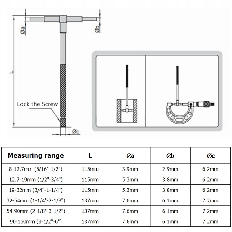 НАБІР 6 ШТ. РЕГУЛЬОВАНИЙ ТЕЛЕСКОПІЧНИЙ МІР ДІАПЕТРА З ДІАПАЗОНОМ ВИМІРЮВАННЯ 8-150 мм
